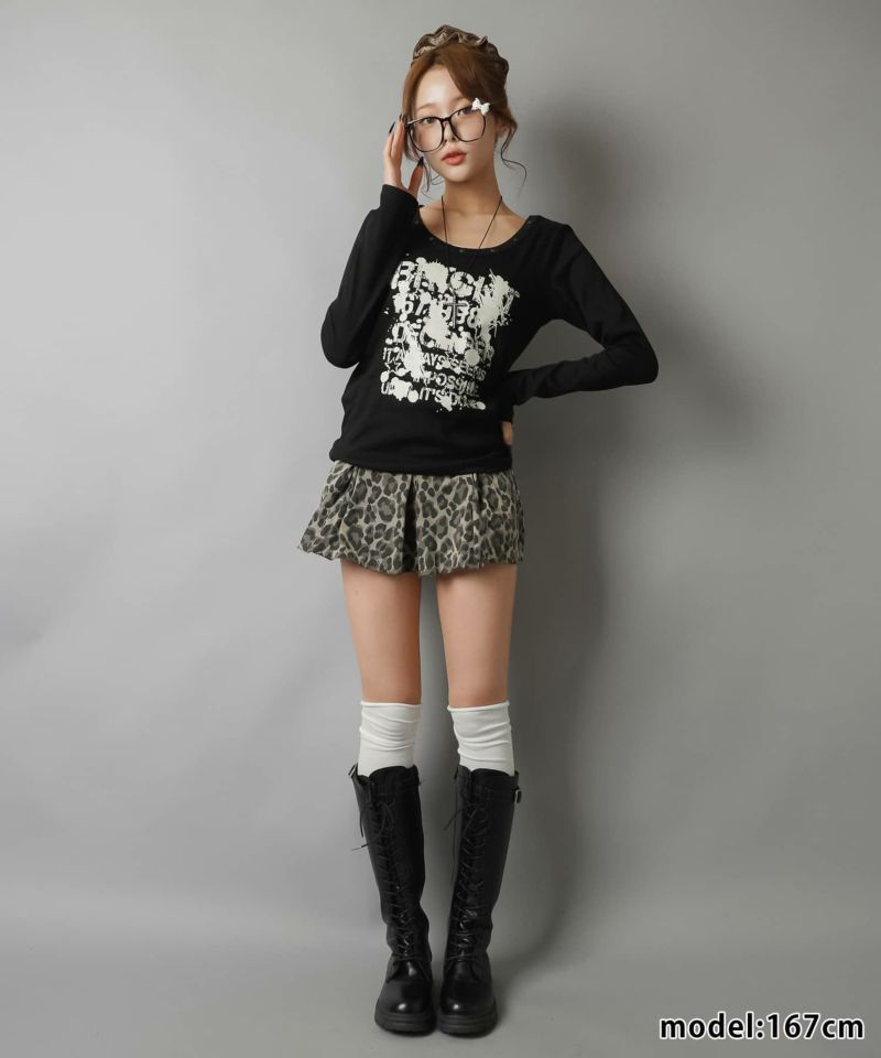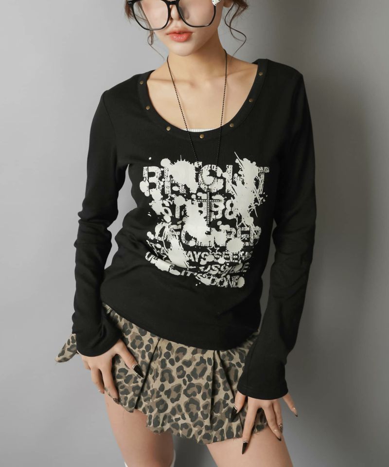 スタッズ付き長袖カットソー/ペイント/#平成ギャル