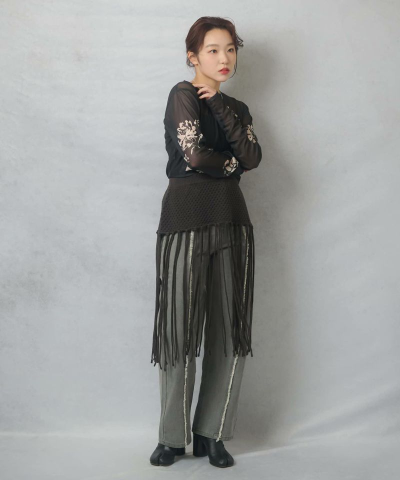 【繊細なデザインとトレンド感を兼ね備えたシアートップス】