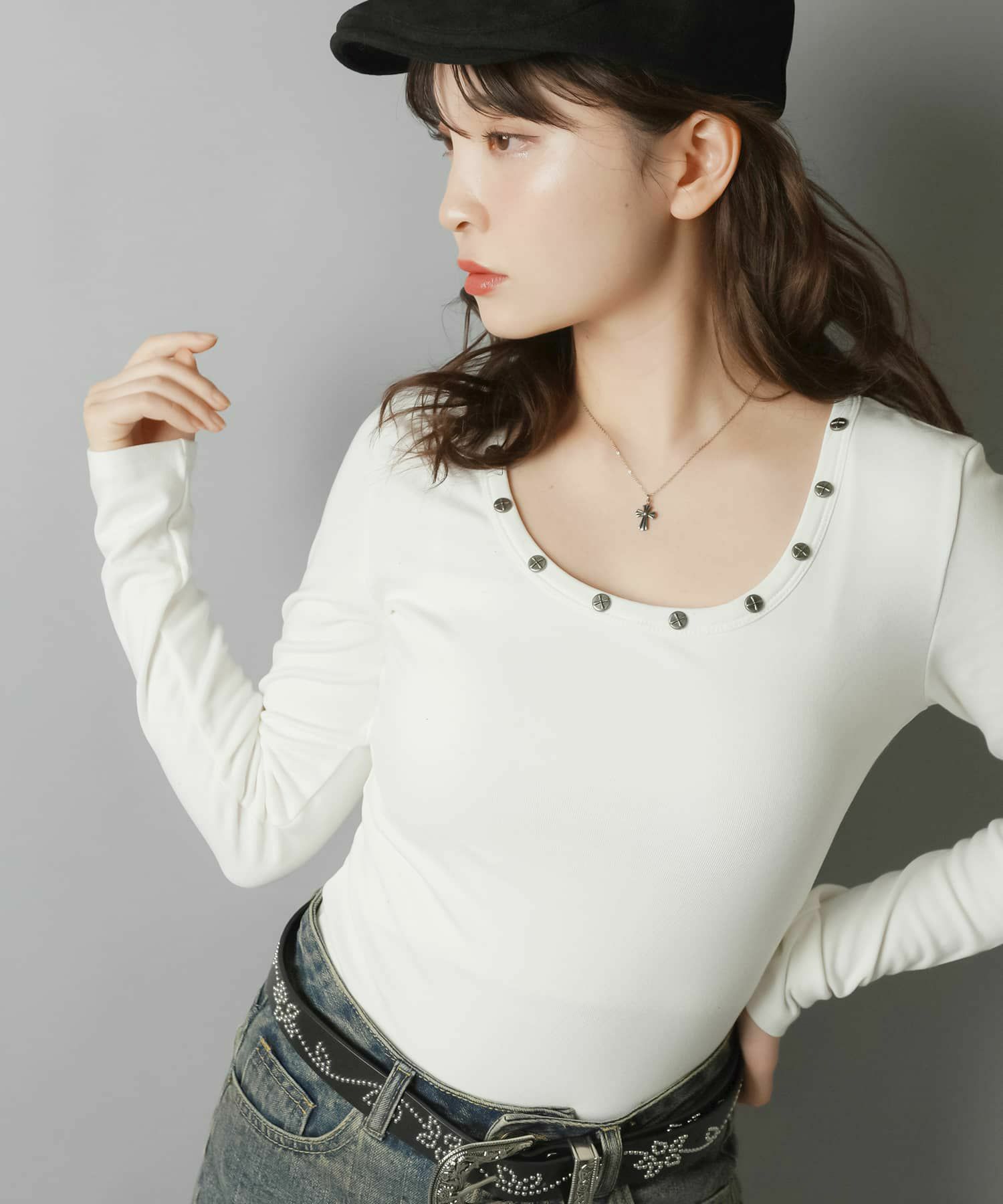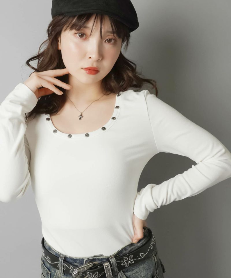トレンドの“スタッズデザイン”を散りばめた、シンプルなのに存在感のあるカットソー。