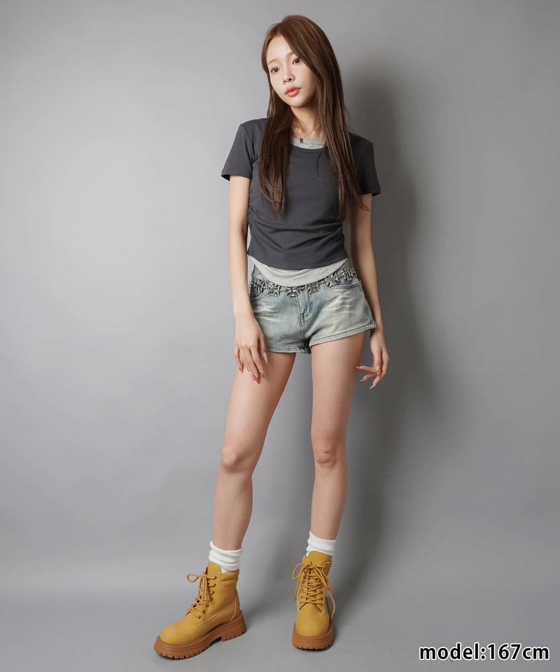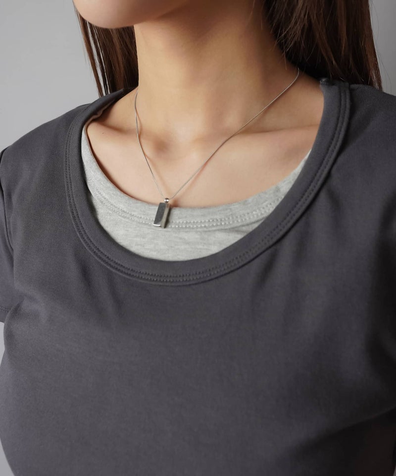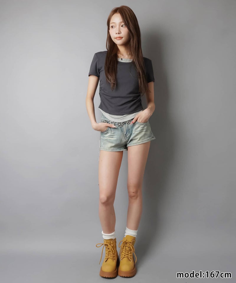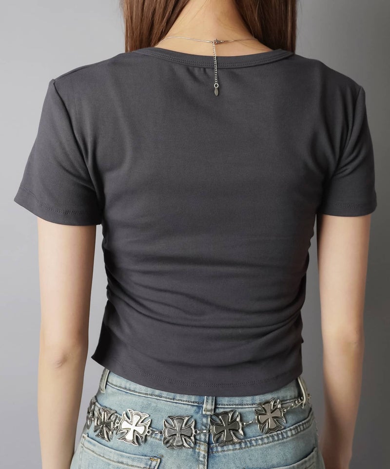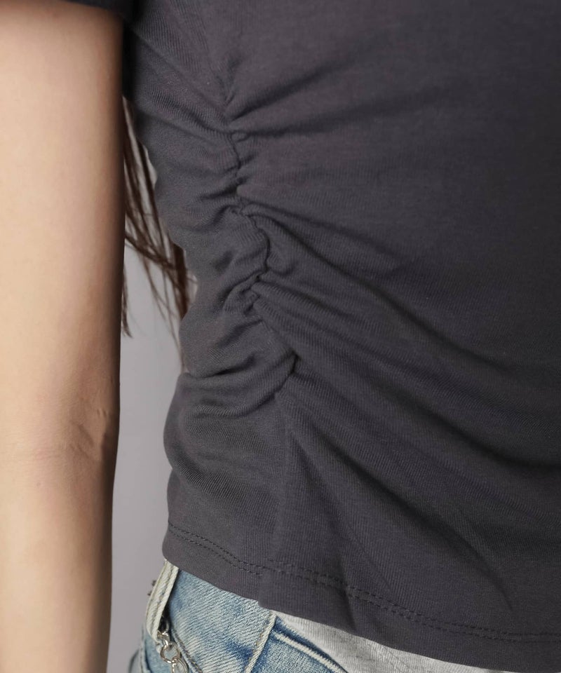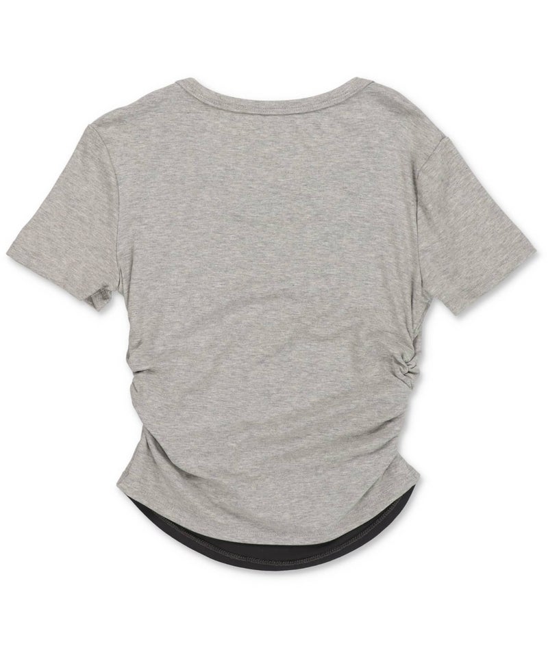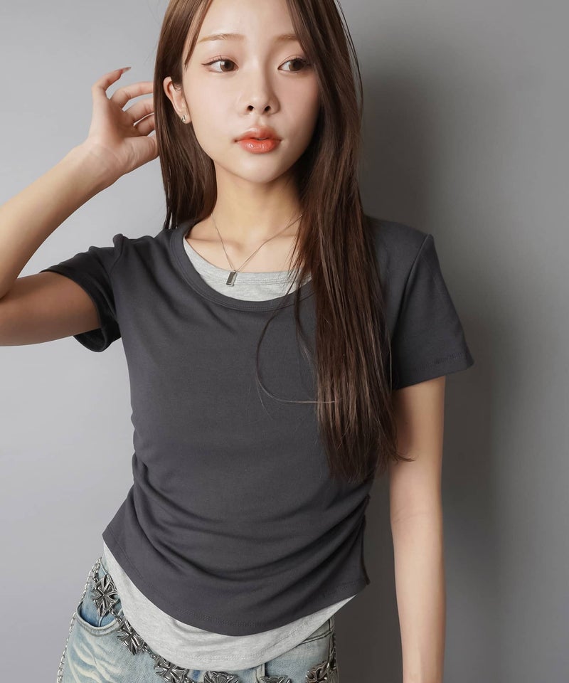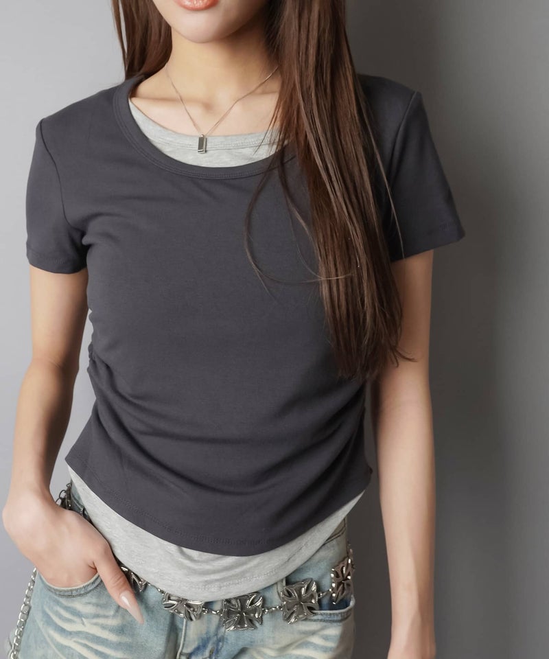 レイヤード風半袖カットソー/ギャザー