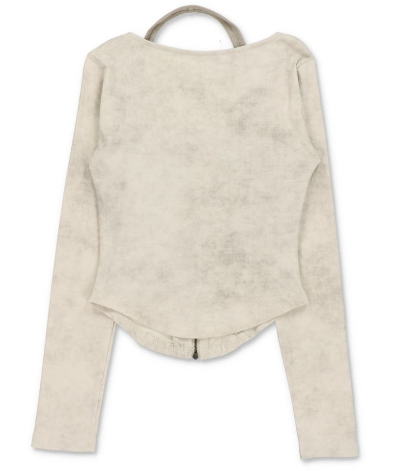 レイヤード風長袖ジップカットソー/ムラ染め風