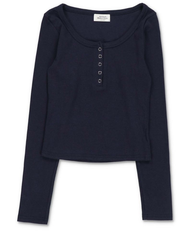 ヘンリーネック長袖カットソー/スナップボタン