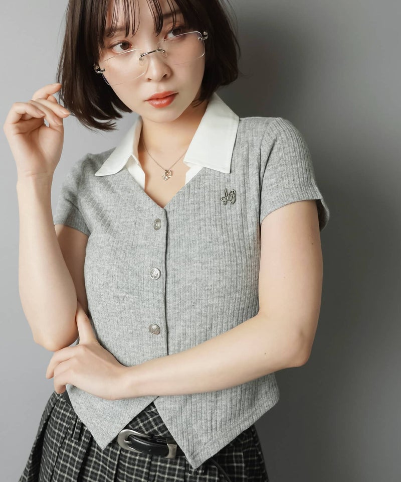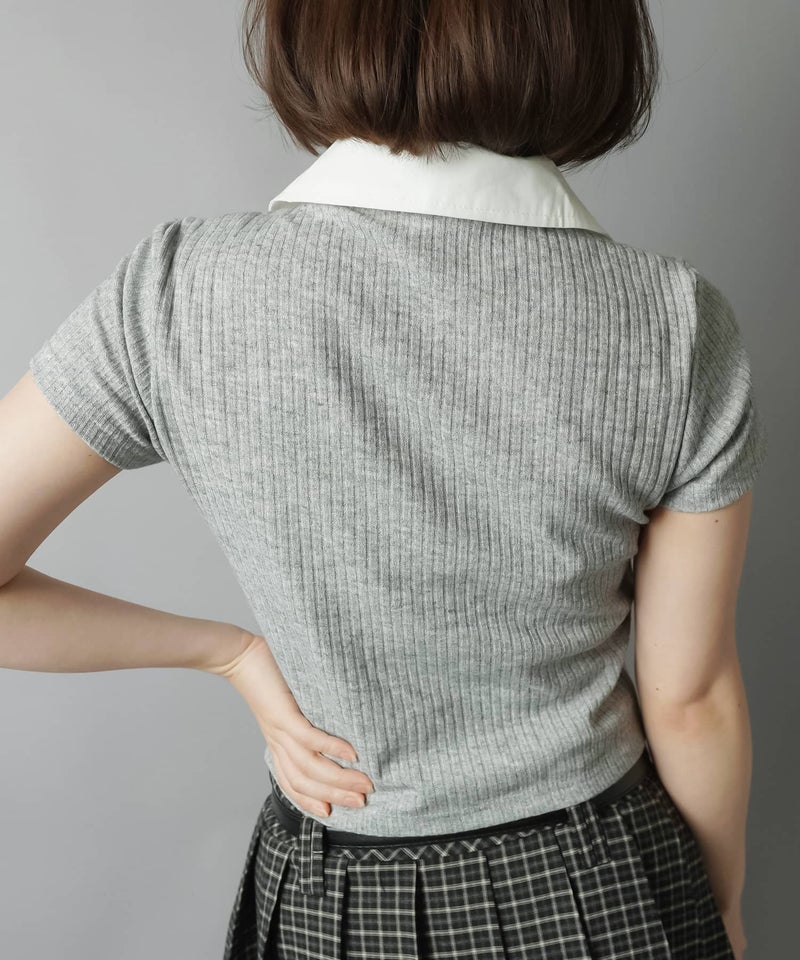 襟付き半袖カットソー/スクールガール風