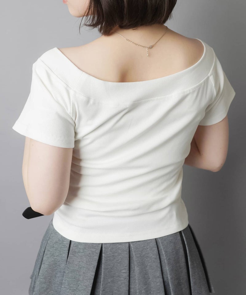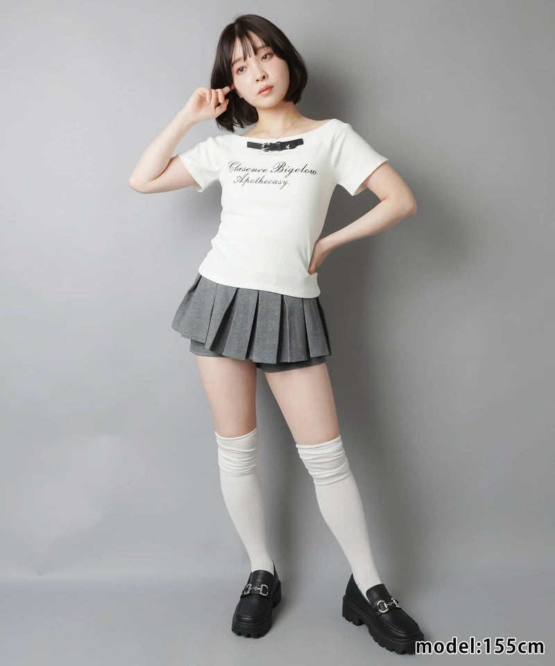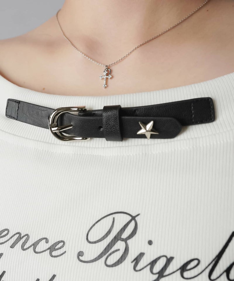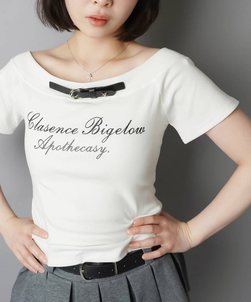 半袖カットソー/ネックベルト/ロゴ