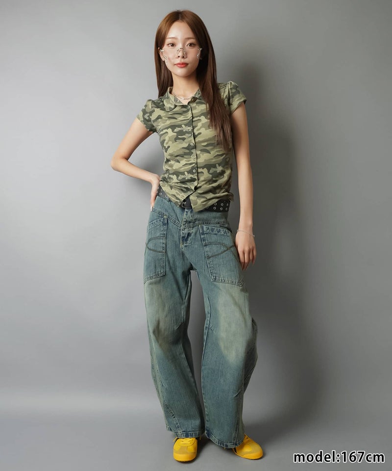 半袖シャツカットソー/全6色/カモ柄/ドット