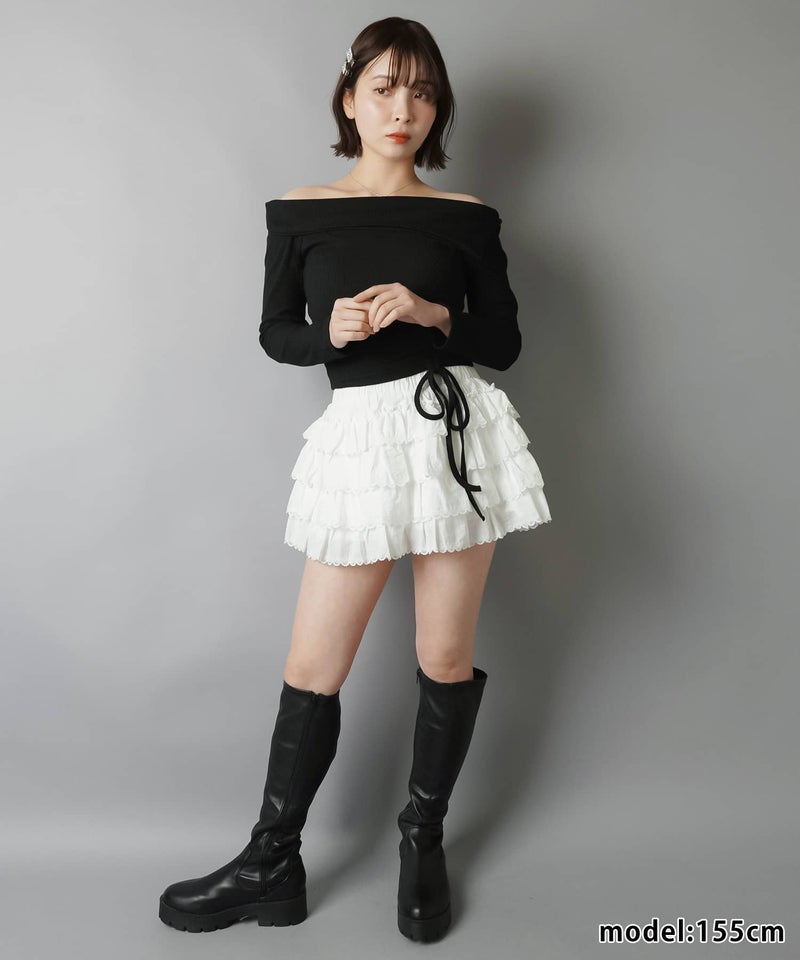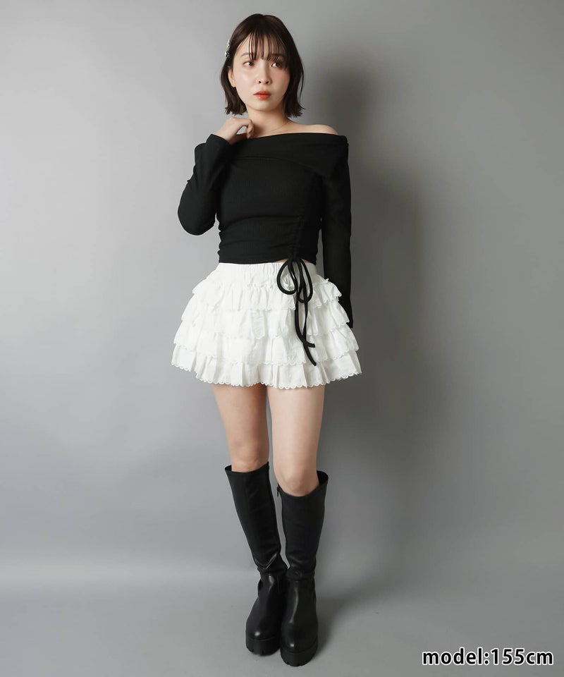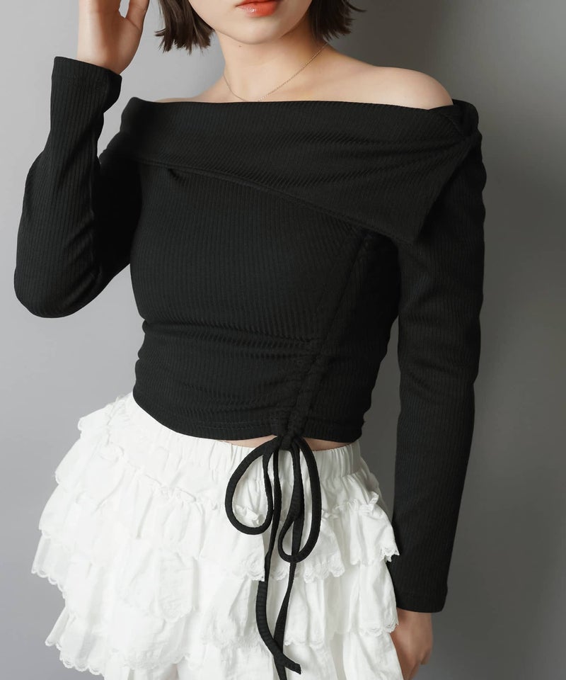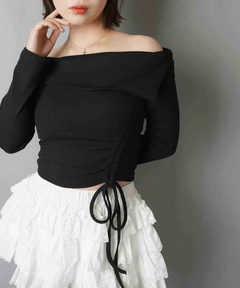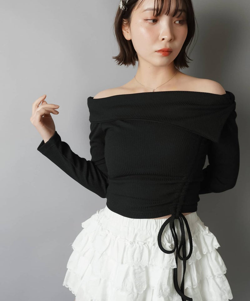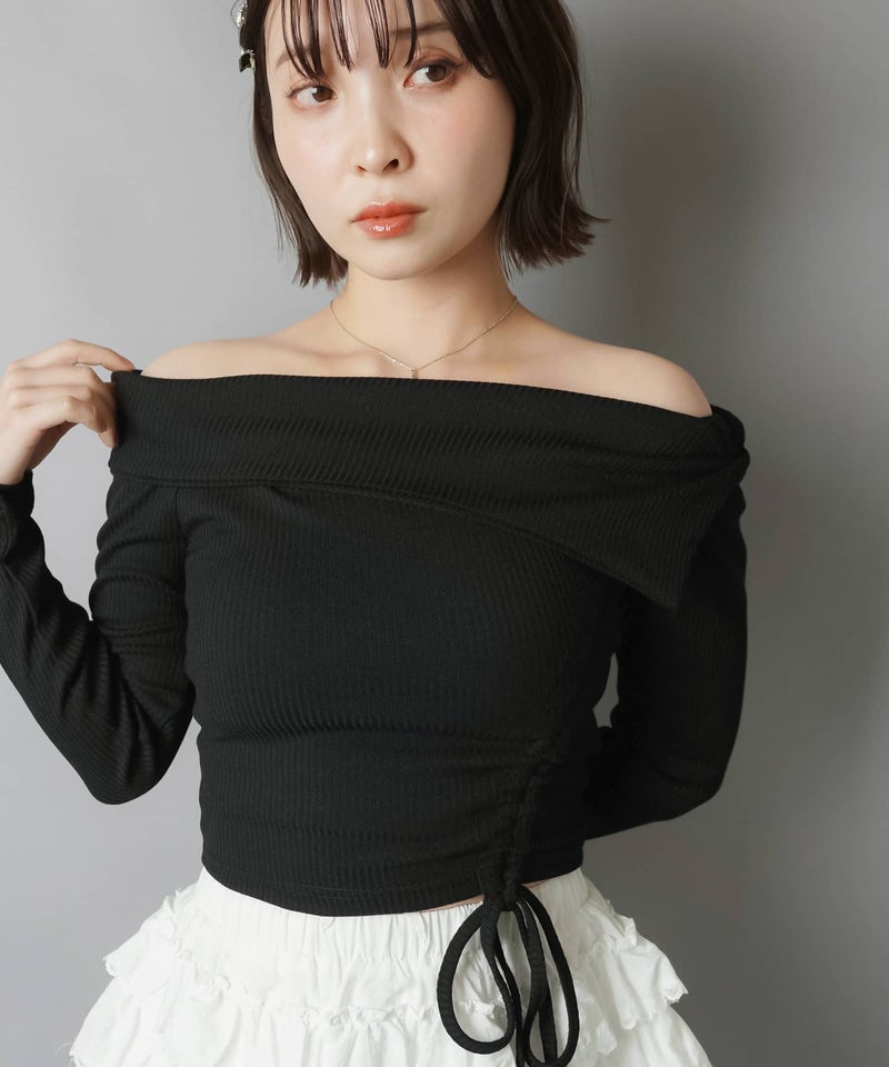 オフショル長袖カットソー/裾ギャザー
