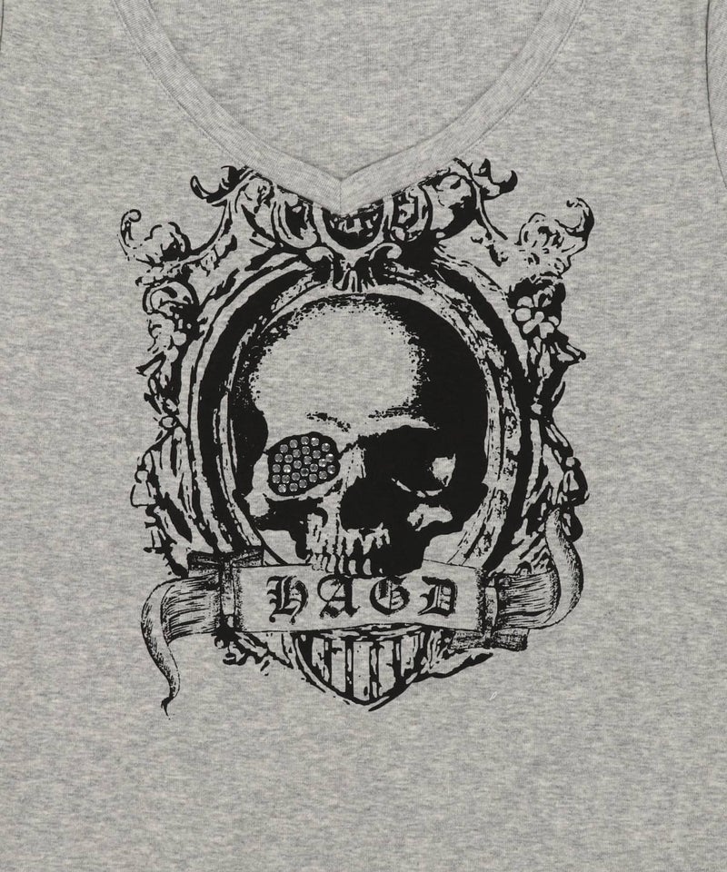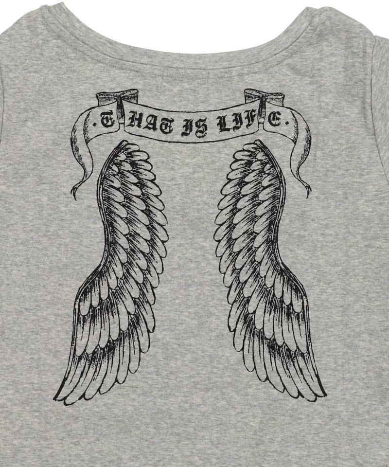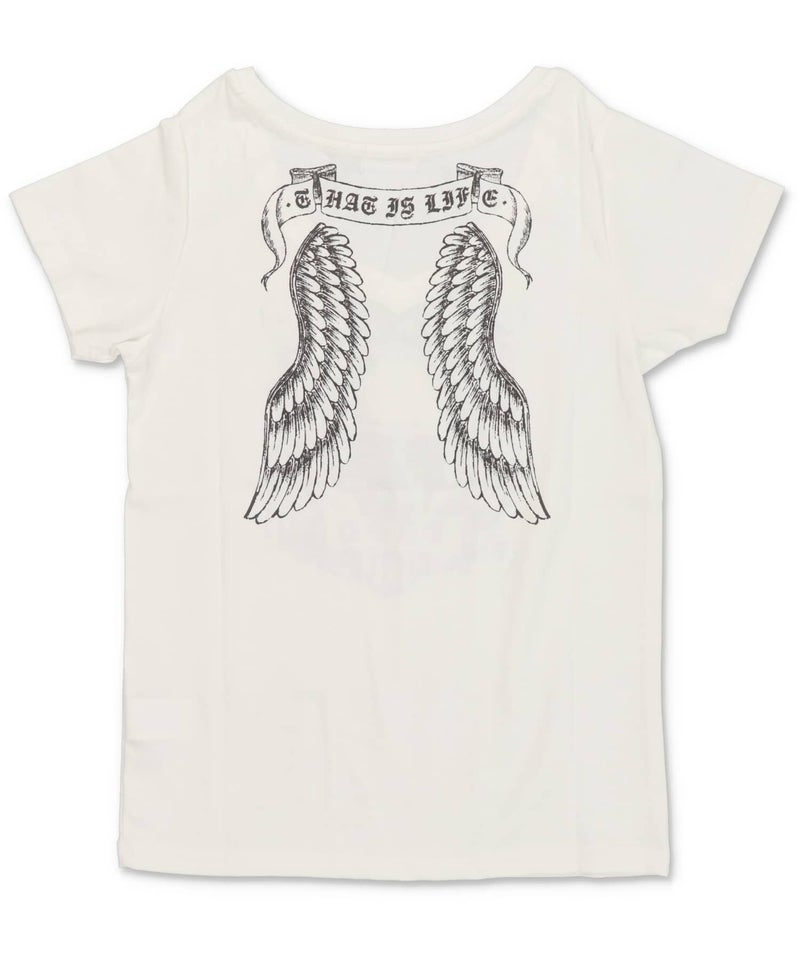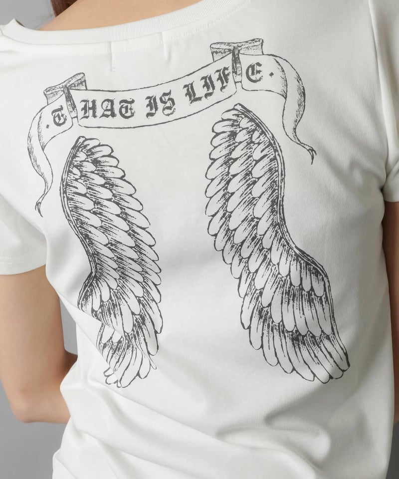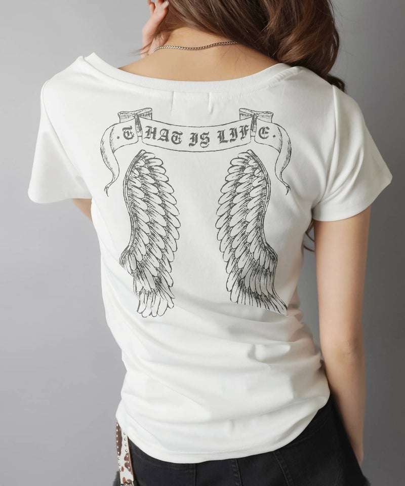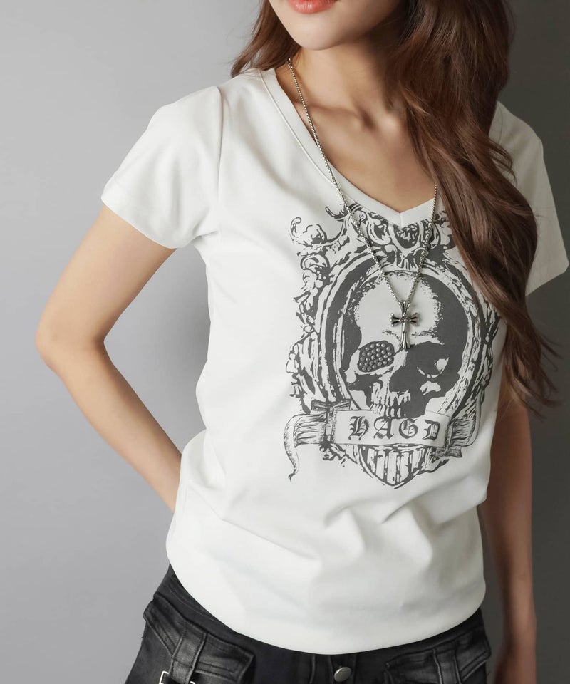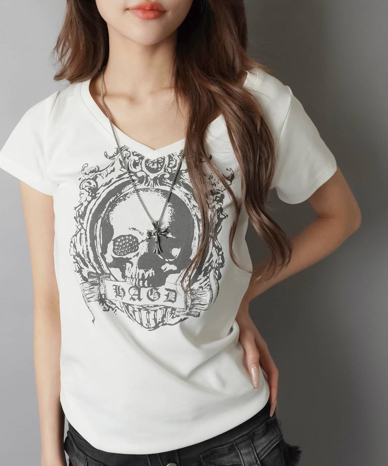 Vネック半袖Tシャツ/スカルウイング/#平成ギャル