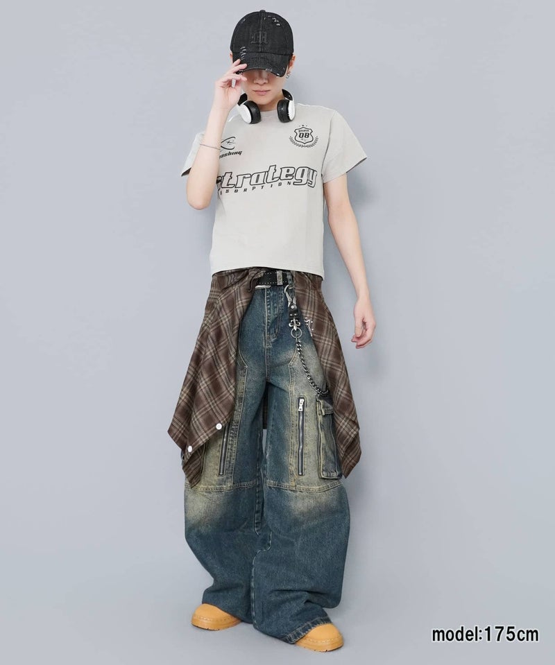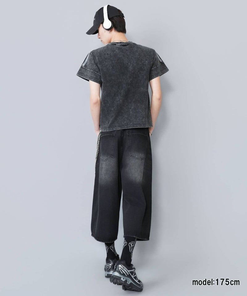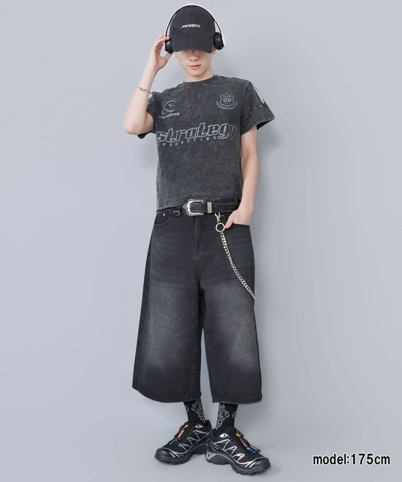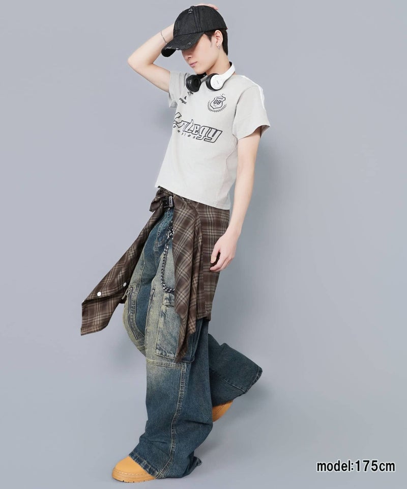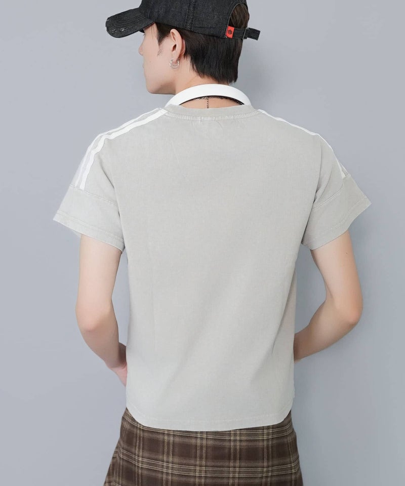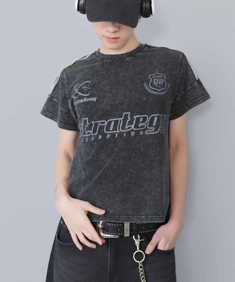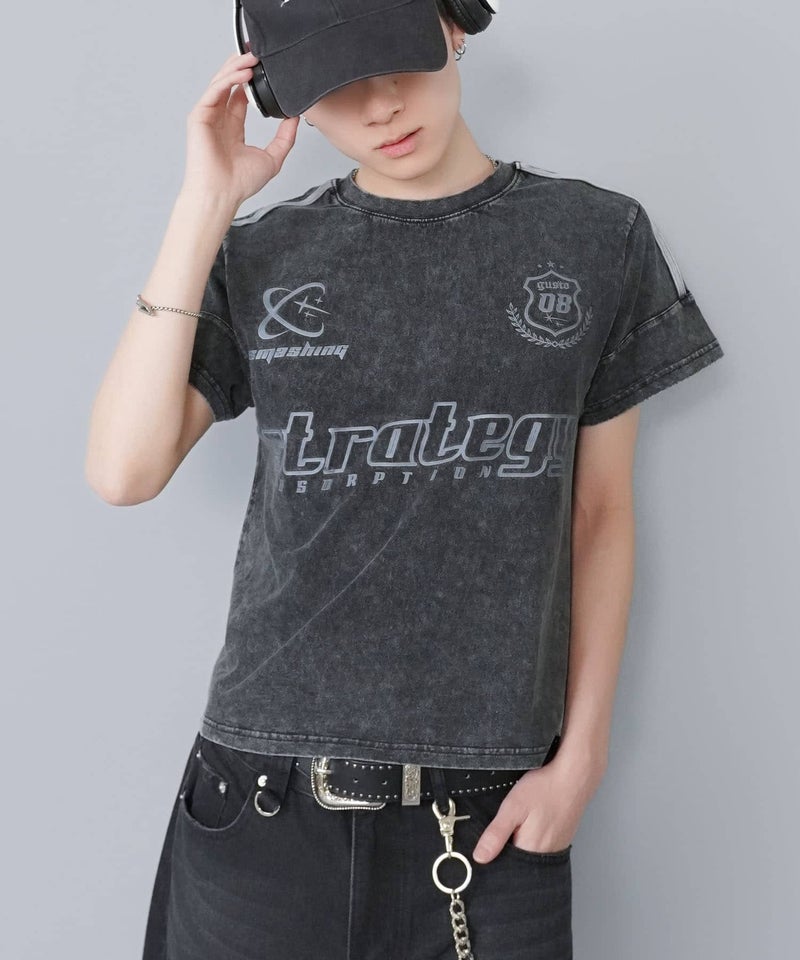 短丈ピグメント加工半袖Tシャツ/ゲームシャツロゴ