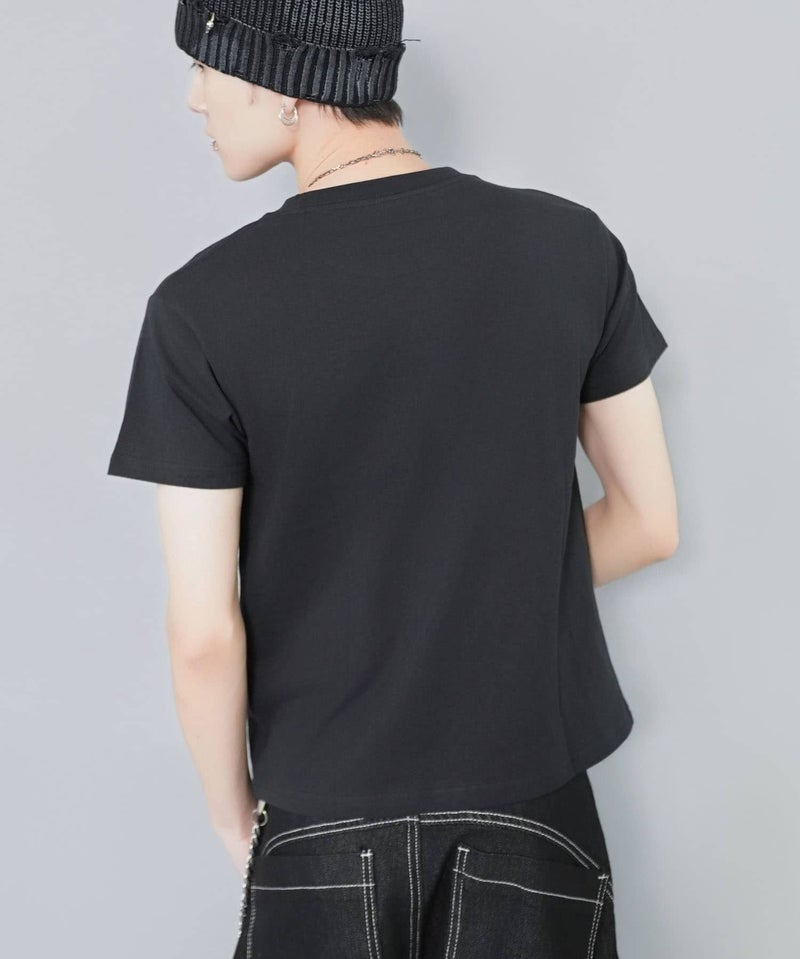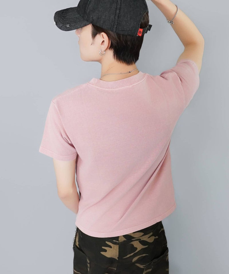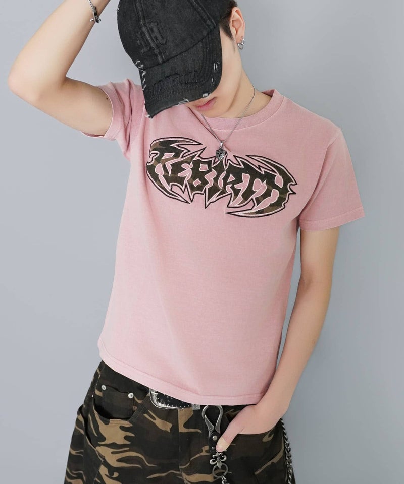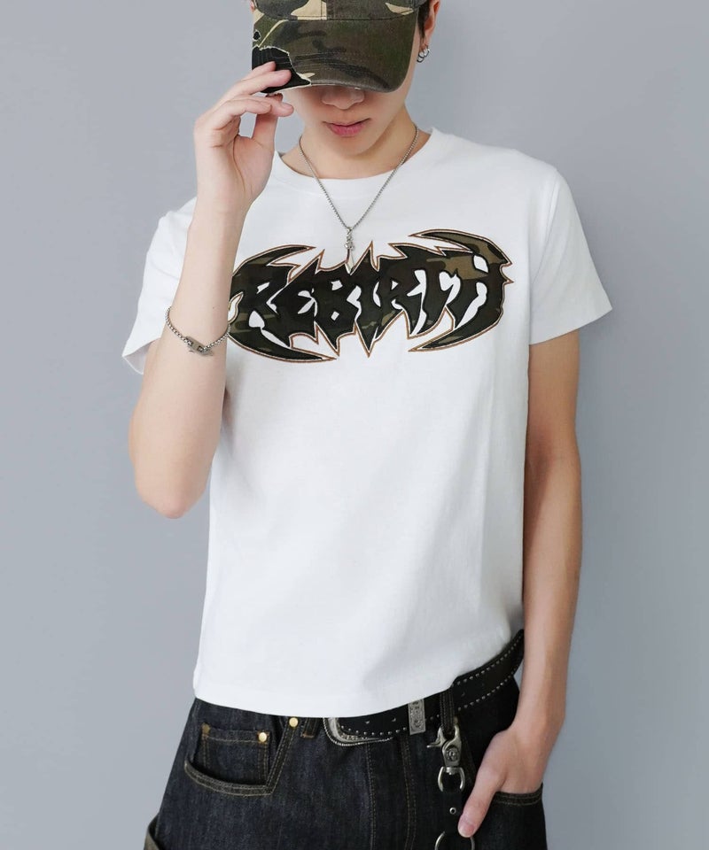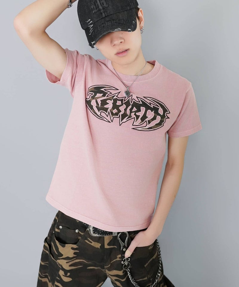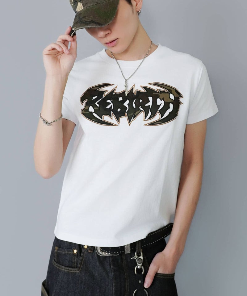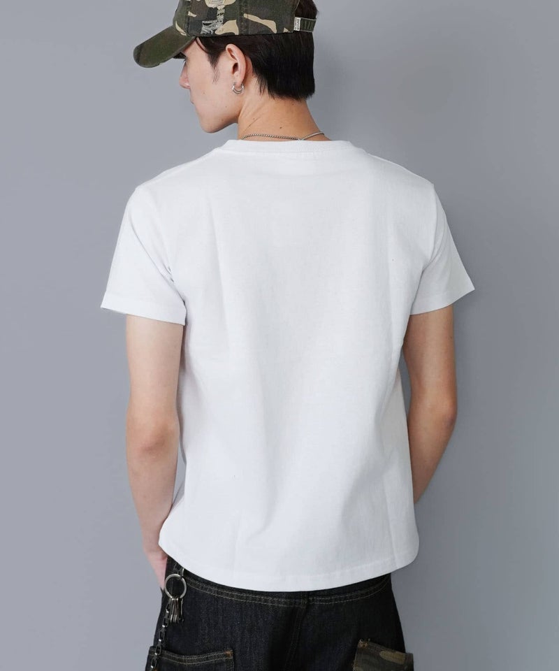 存在感のあるパッチワークロゴが目を引く半袖Tシャツ。