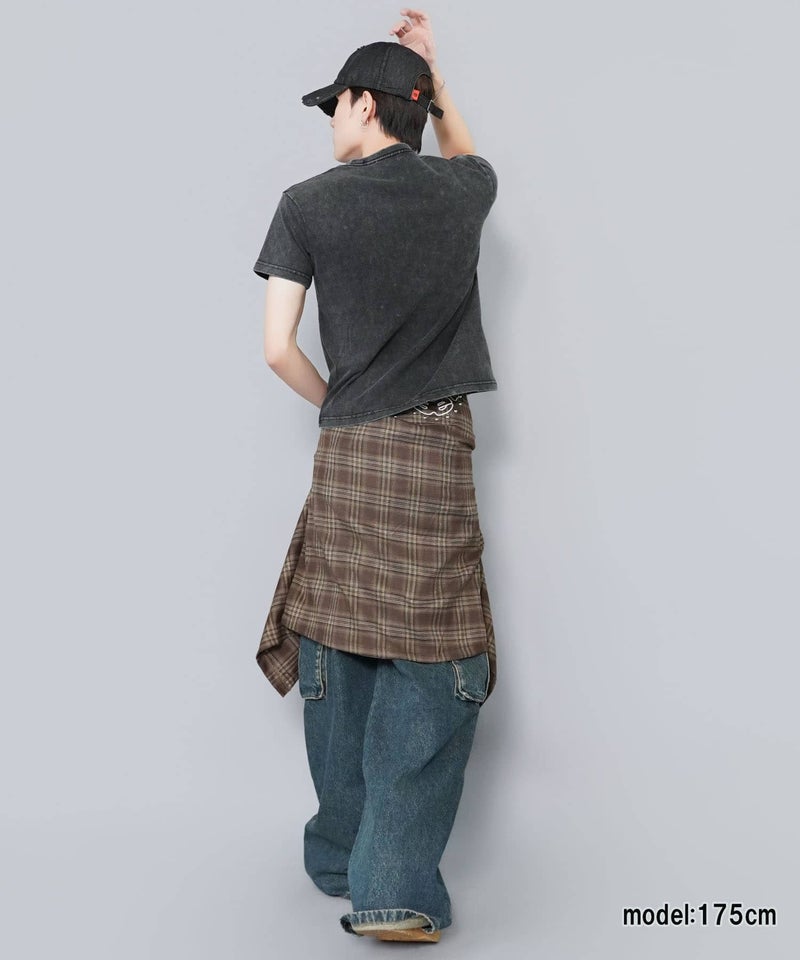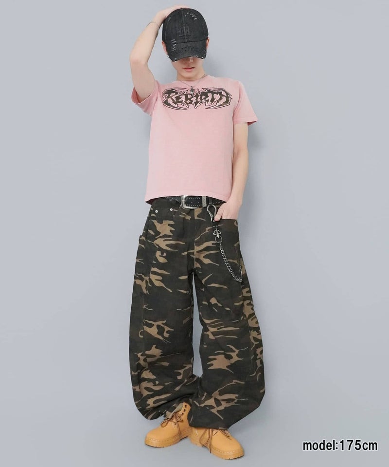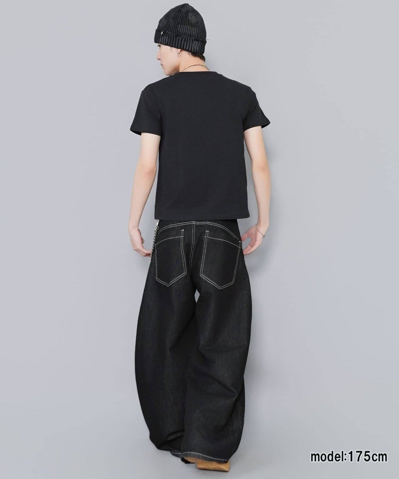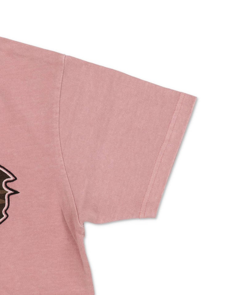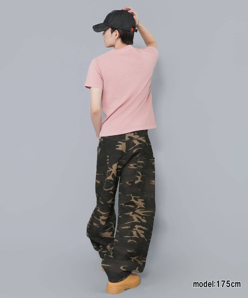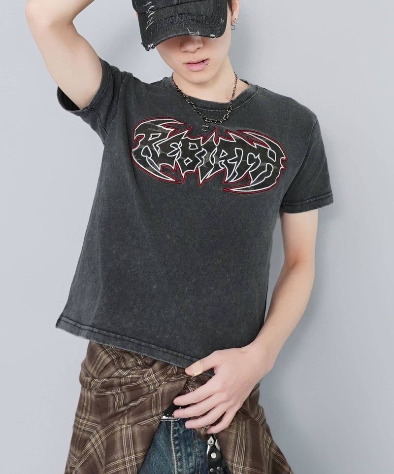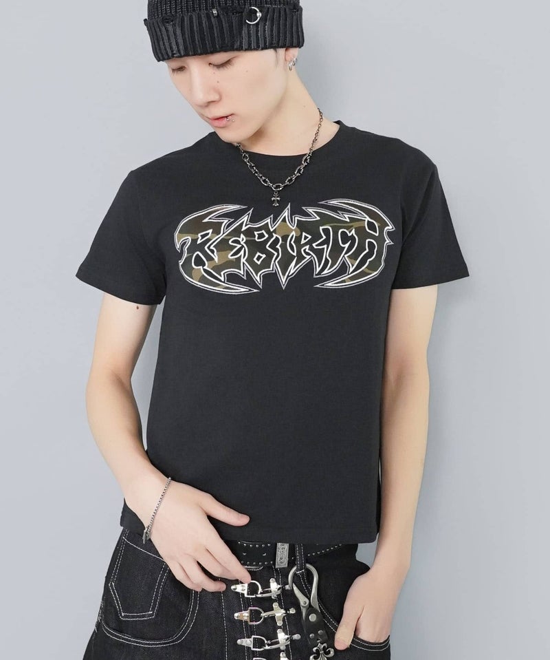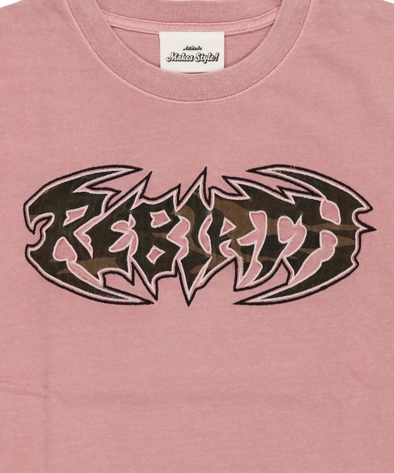 存在感のあるパッチワークロゴが目を引く半袖Tシャツ。