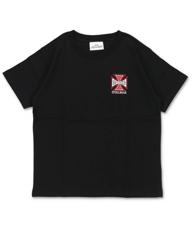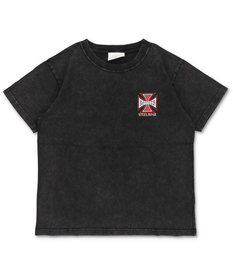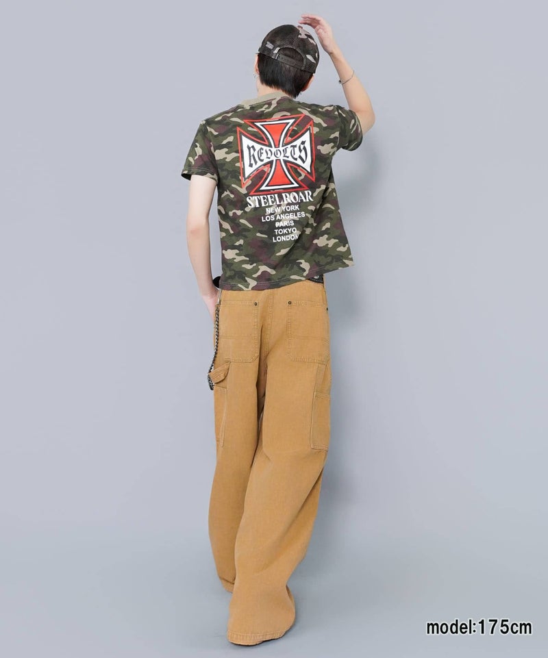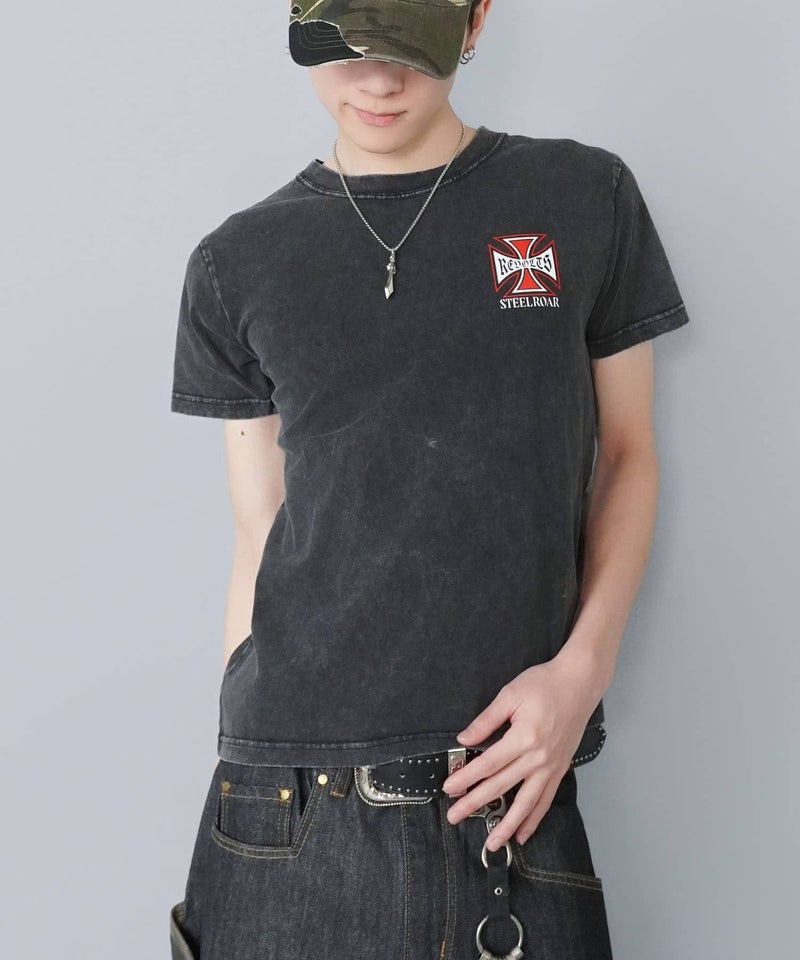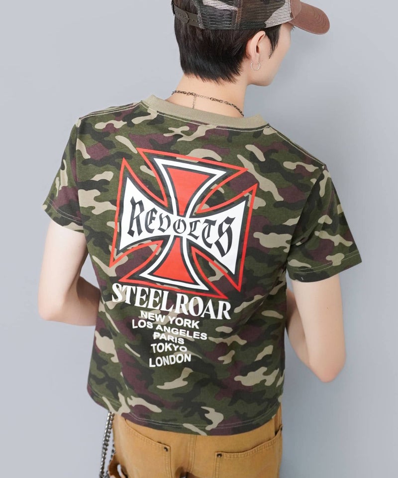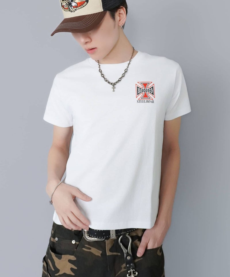 短丈クロスバックプリント半袖Tシャツ/ワンポイント