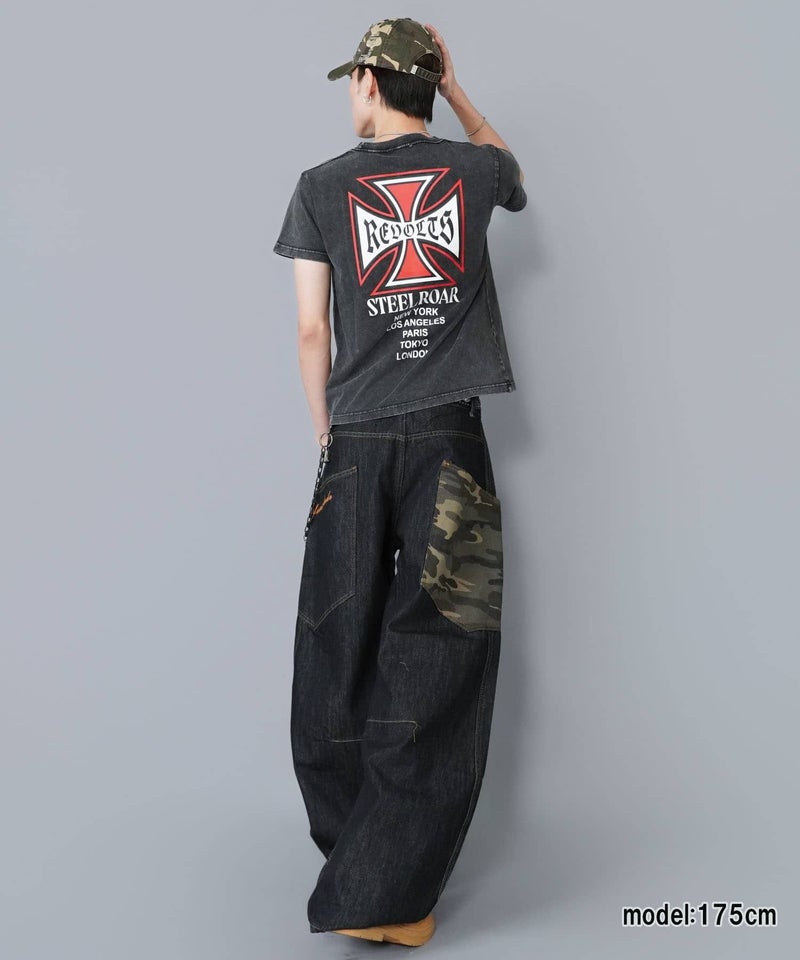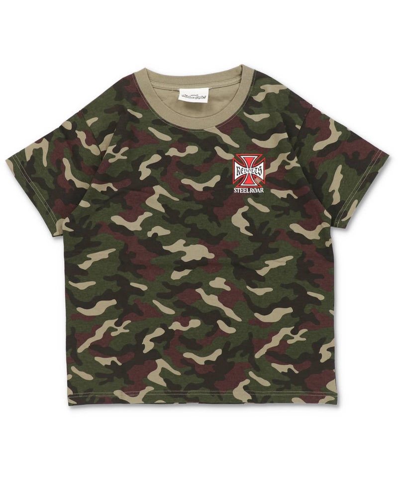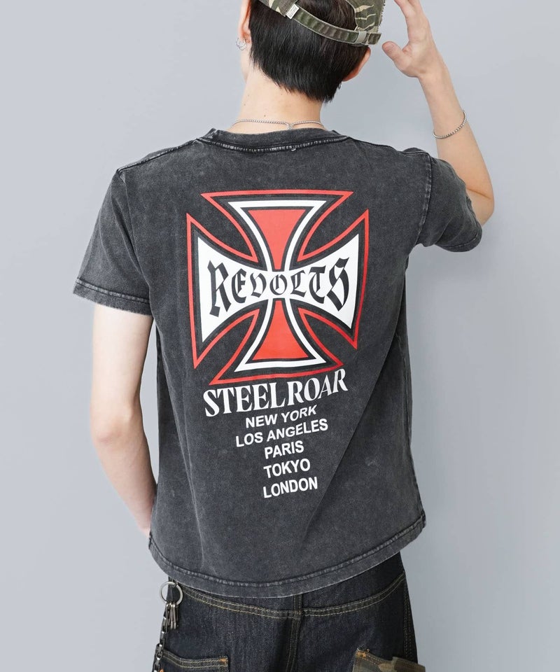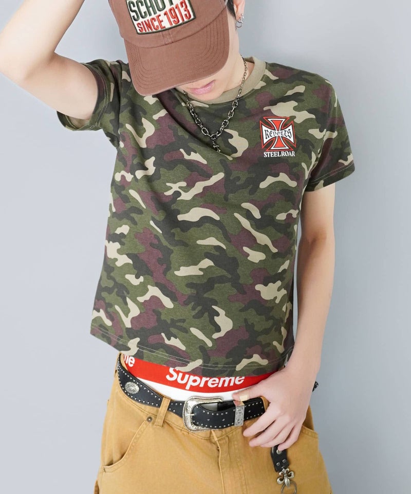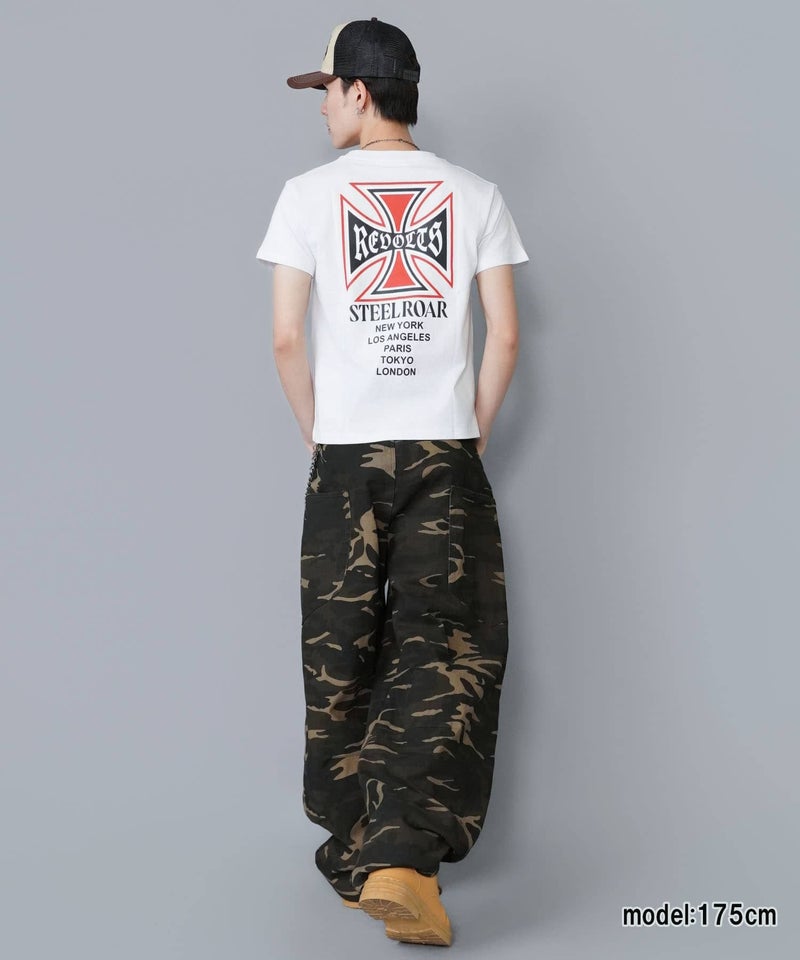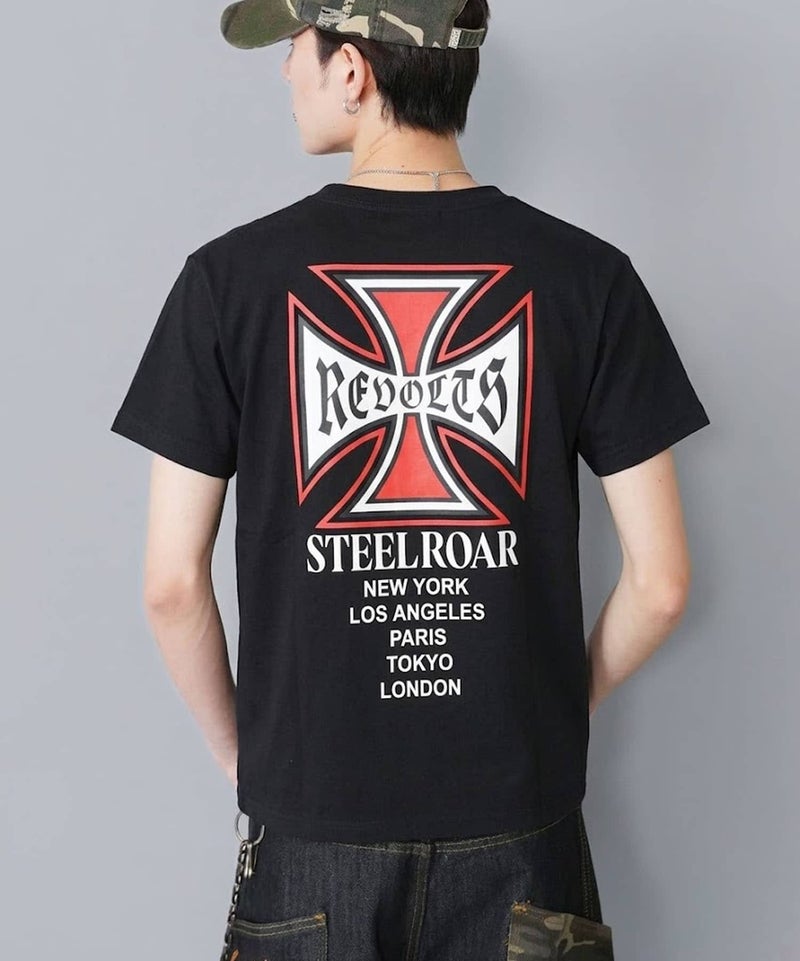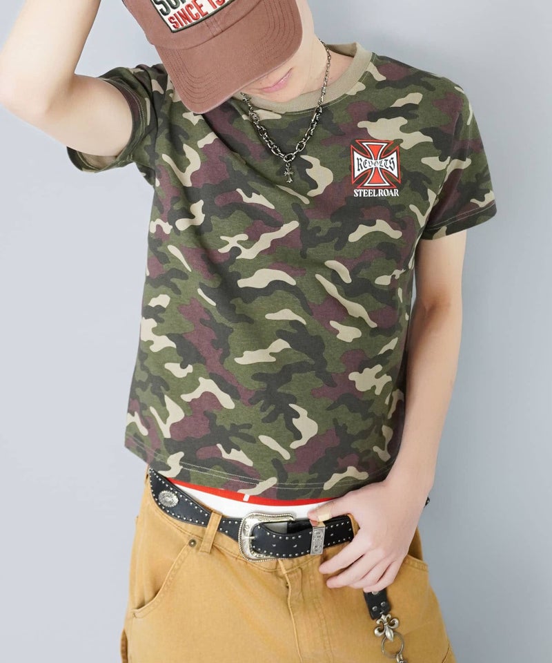 短丈クロスバックプリント半袖Tシャツ/ワンポイント
