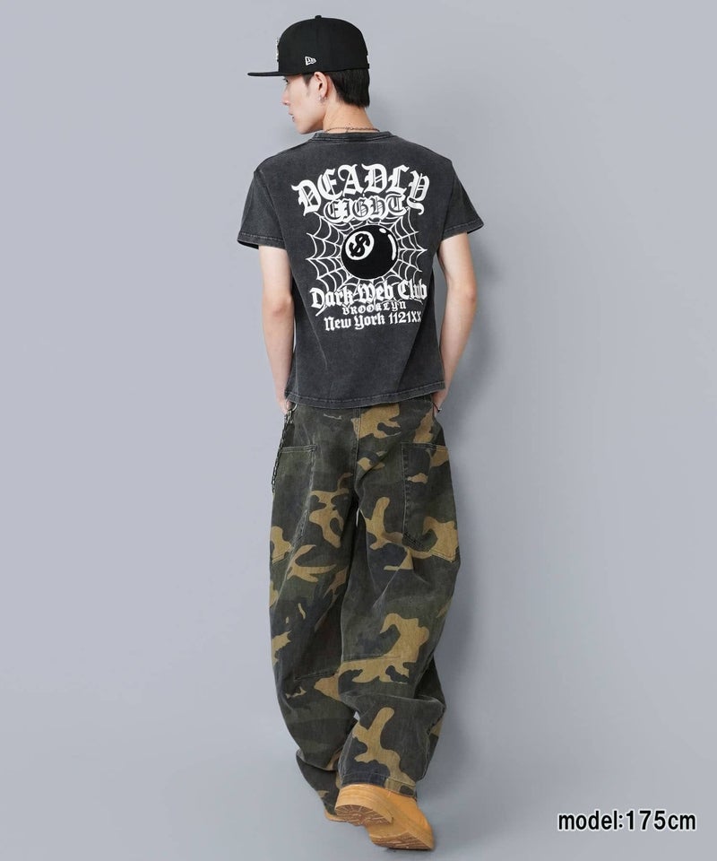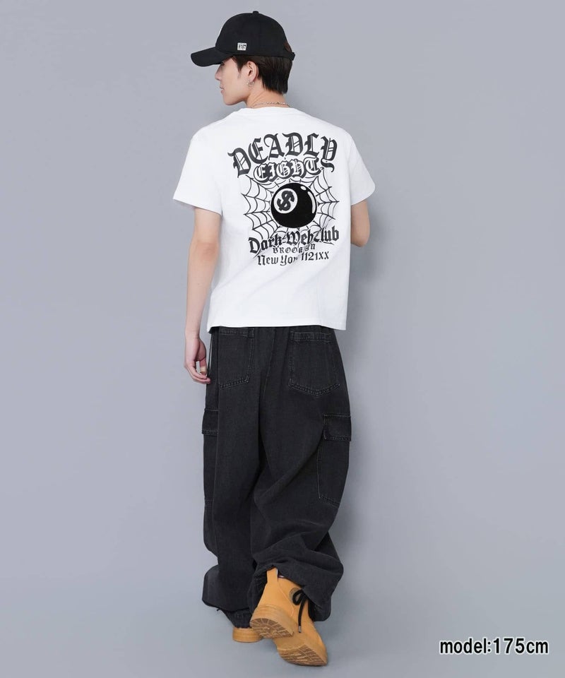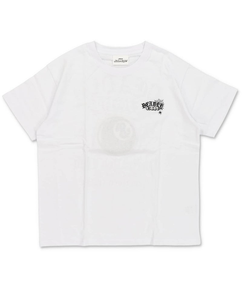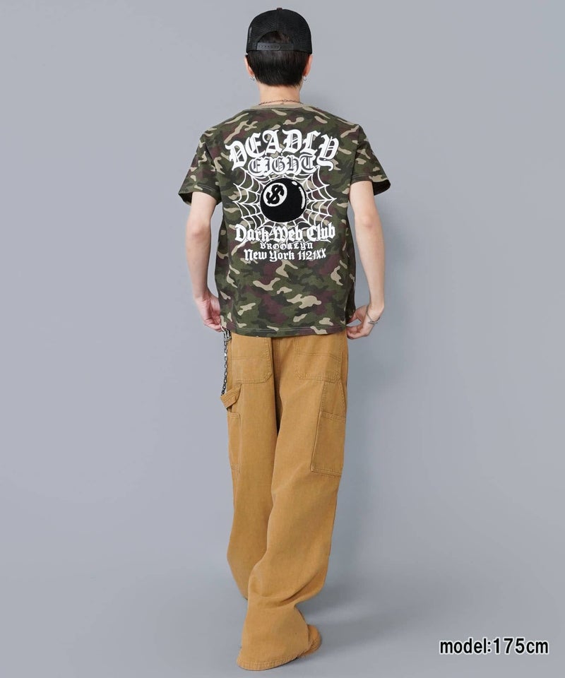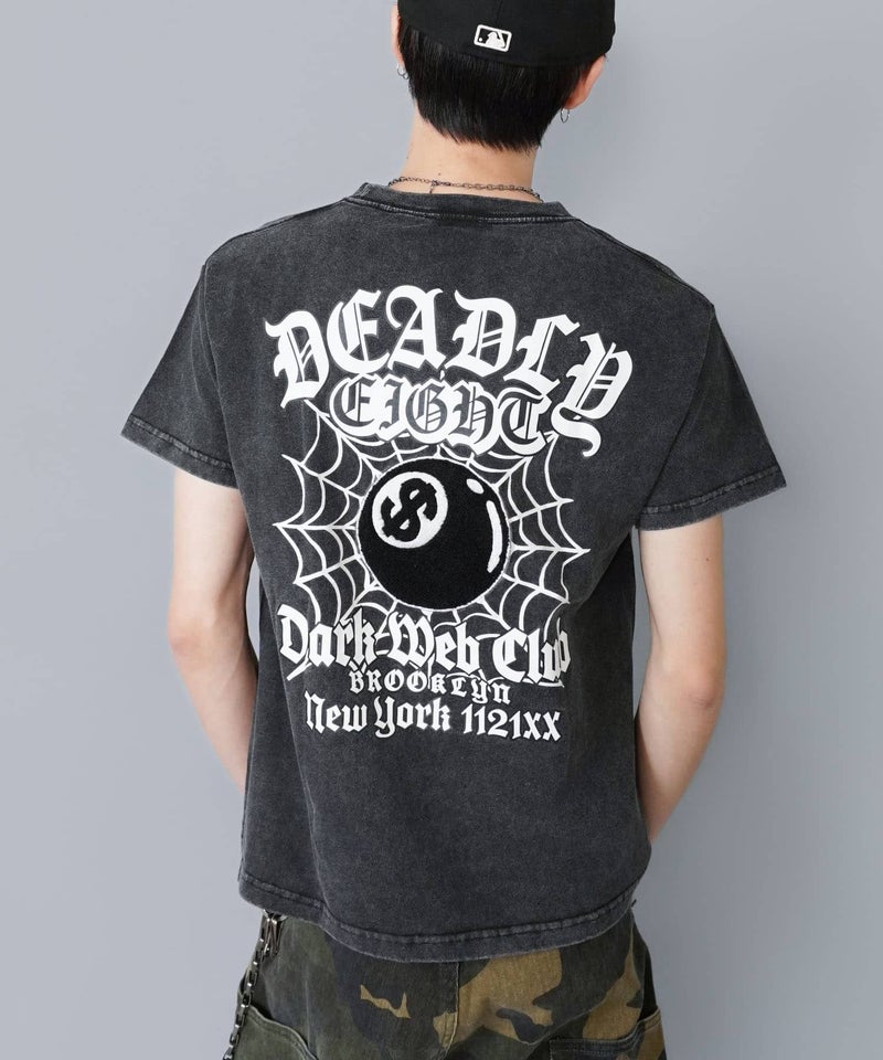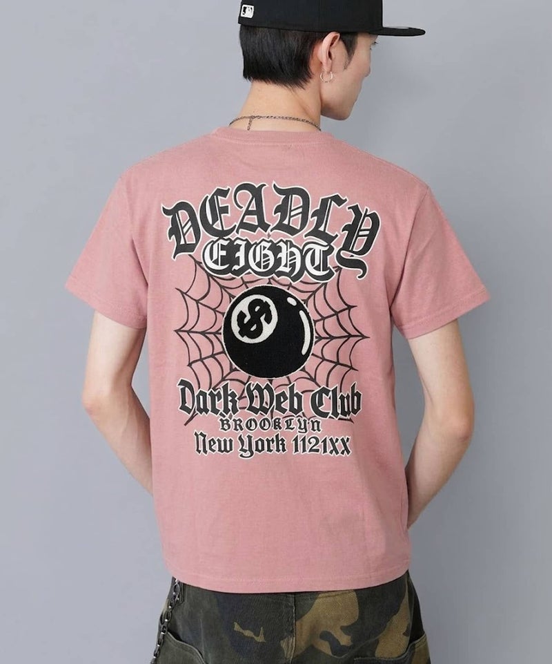 8ボールバックプリント半袖Tシャツ/サガラ刺繍ロゴ/ワンポイント