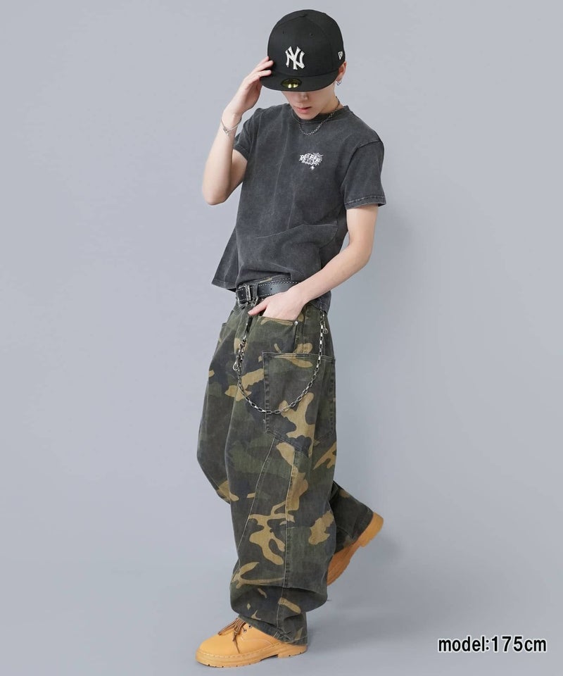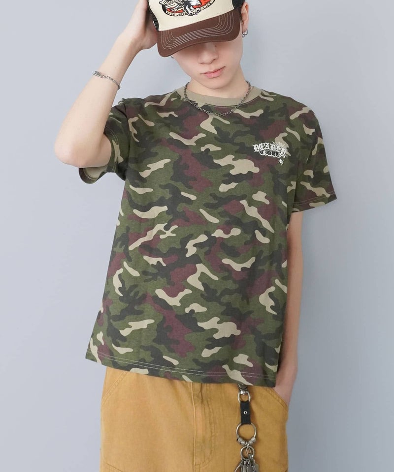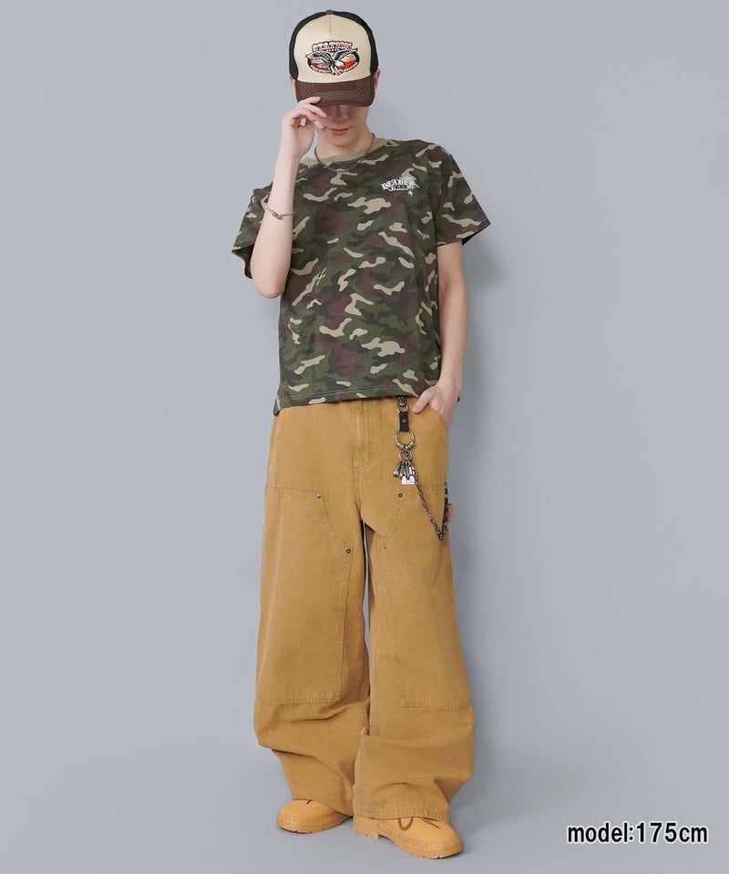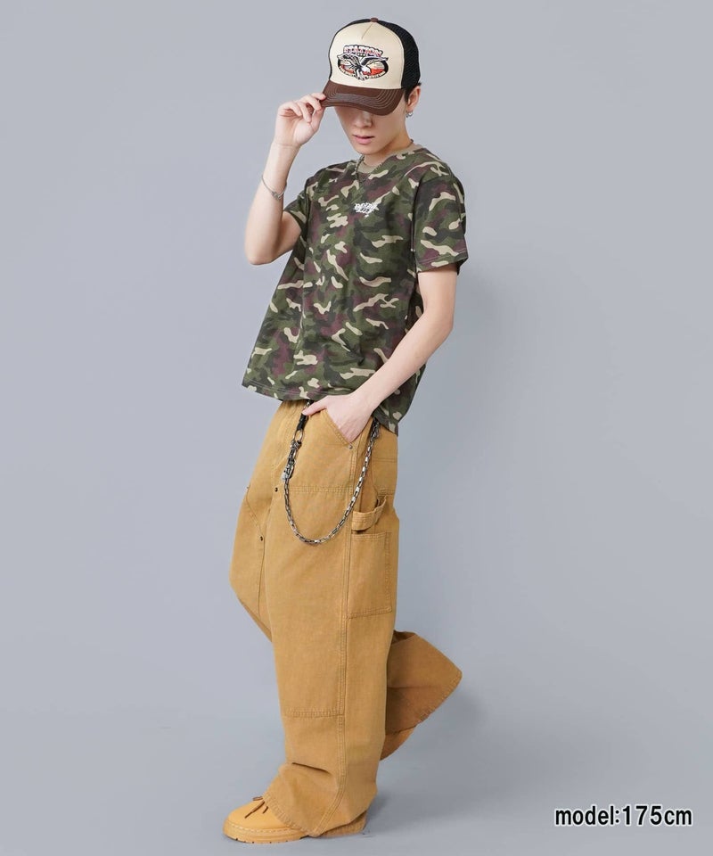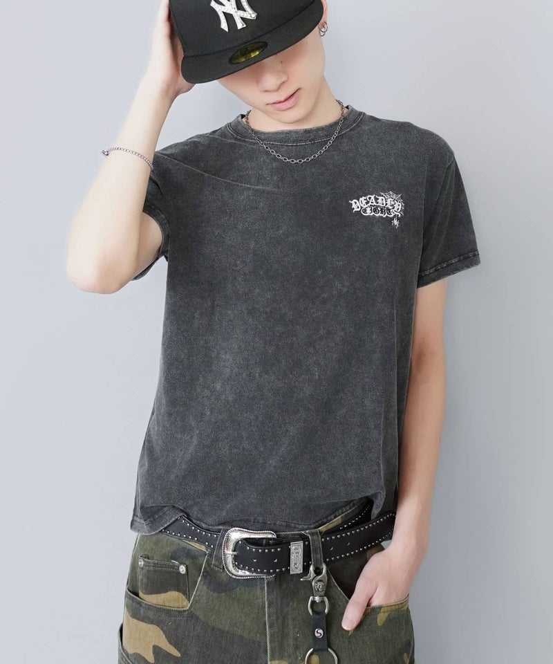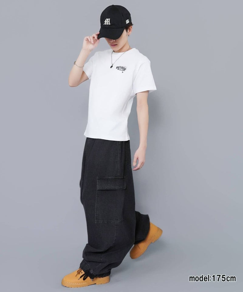 8ボールバックプリント半袖Tシャツ/サガラ刺繍ロゴ/ワンポイント