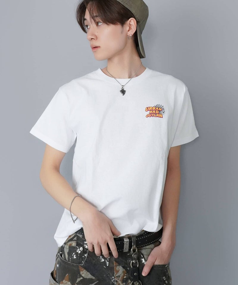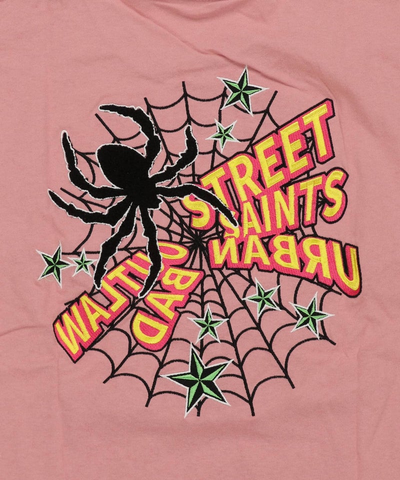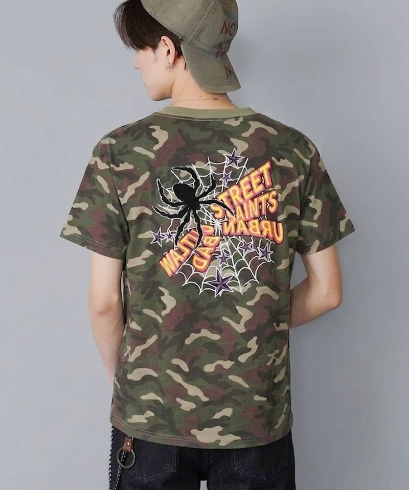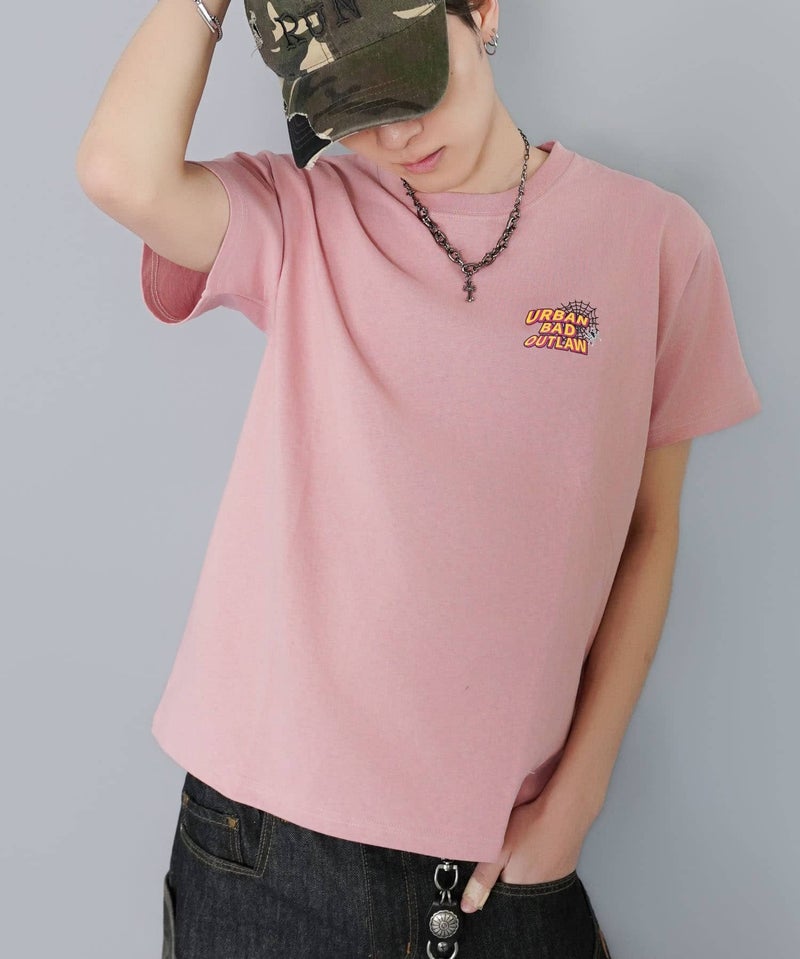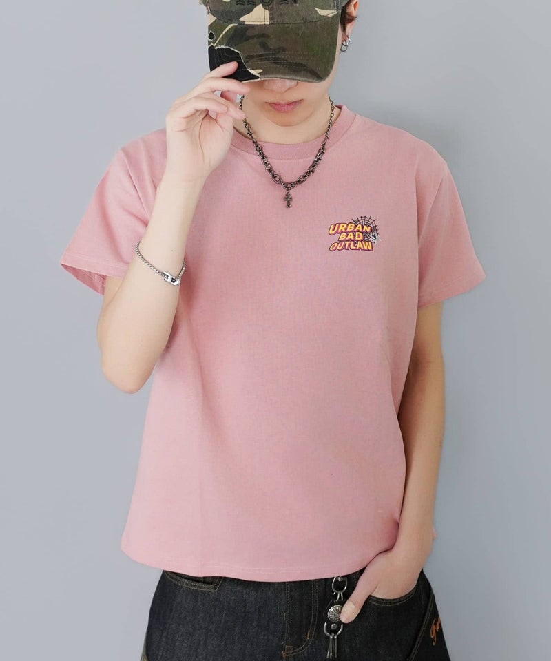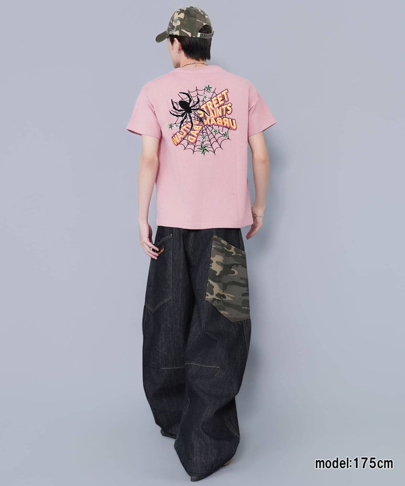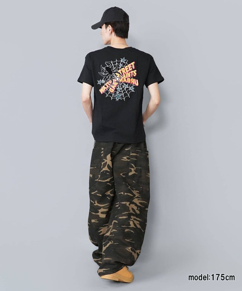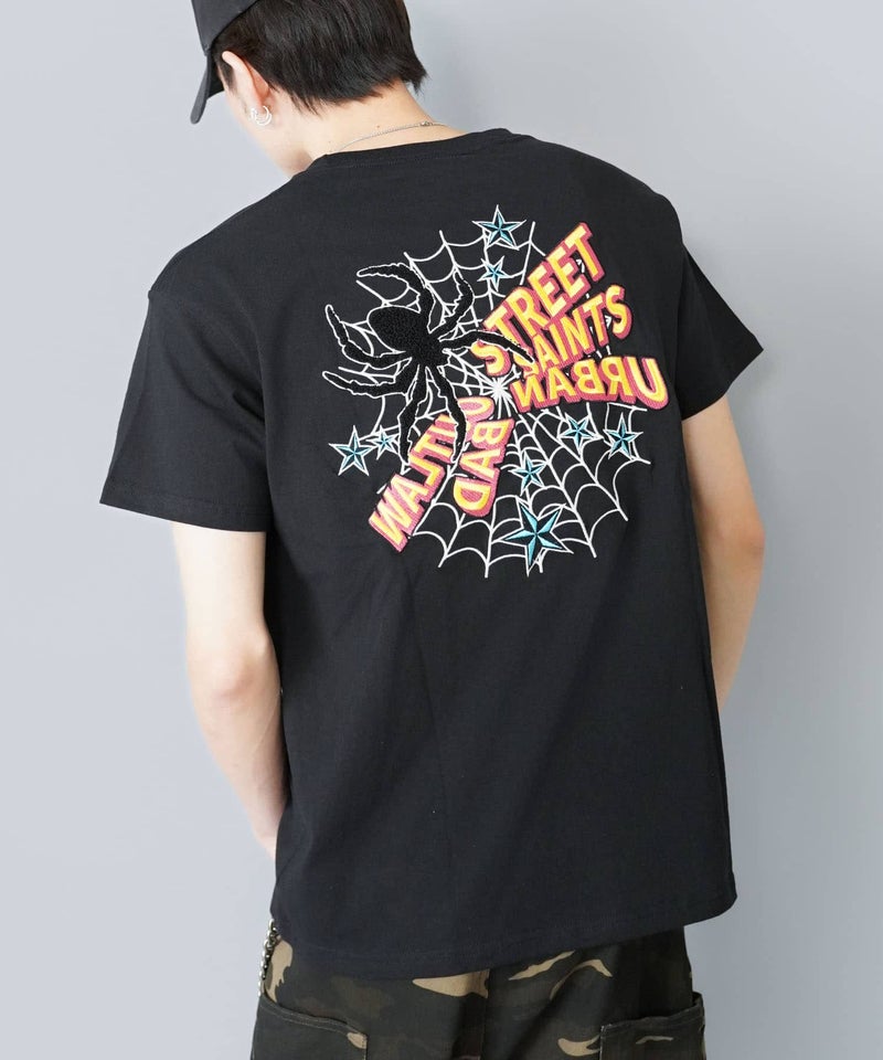 スパイダーバックプリント半袖Tシャツ/サガラ刺繍ロゴ/ワンポイント