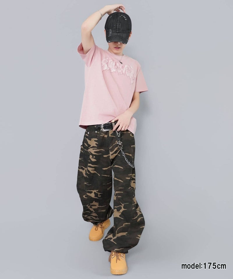 スタイリングのアクセントになるカモフラージュ柄に加え、