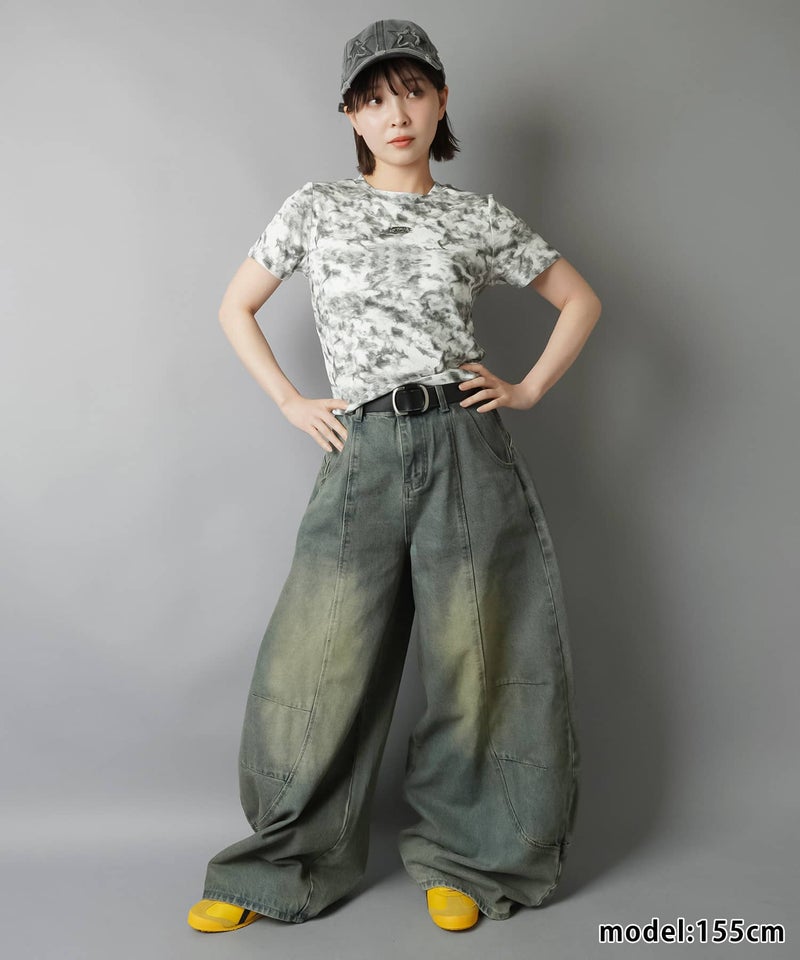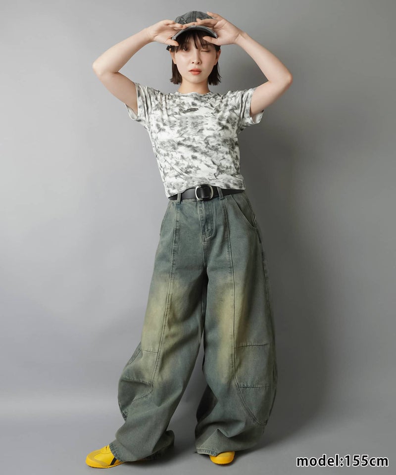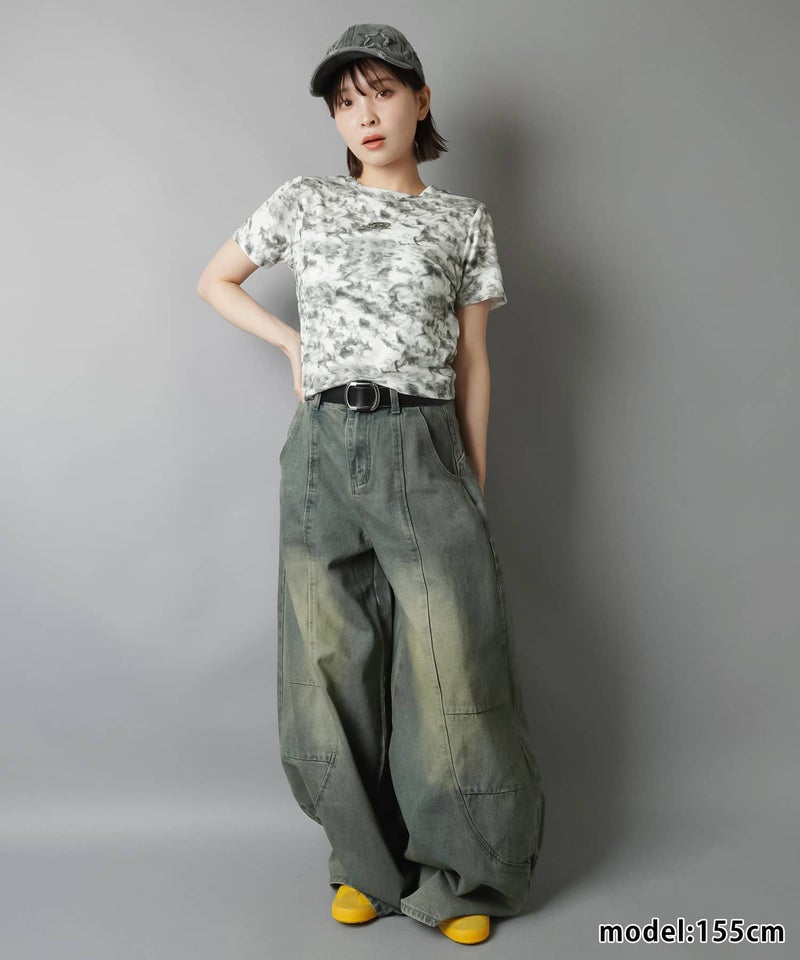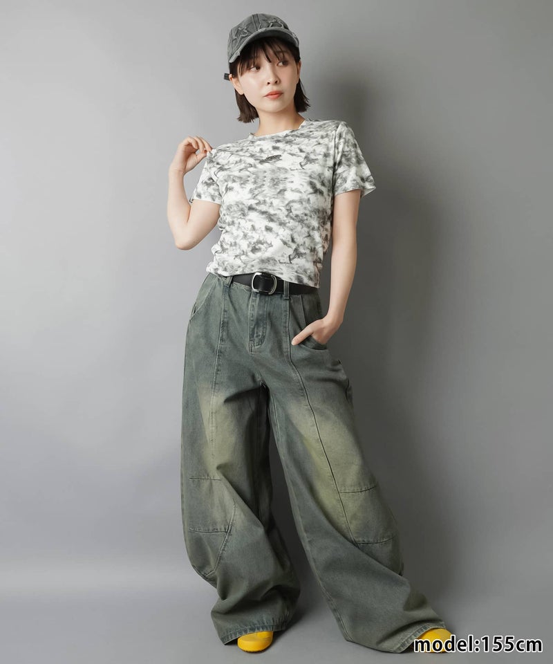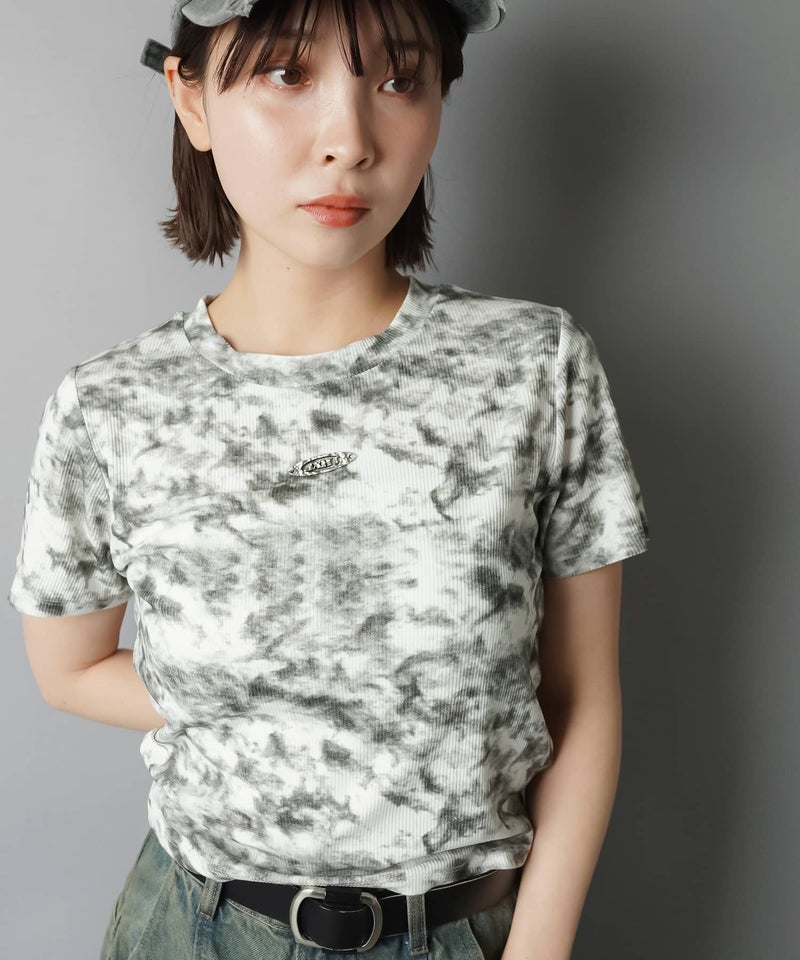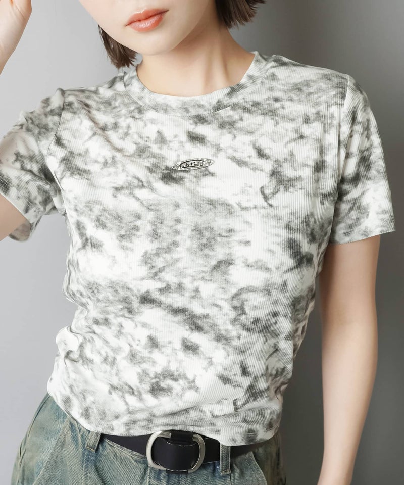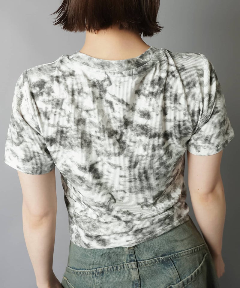 ショート丈半袖Tシャツ/ムラ染め加工