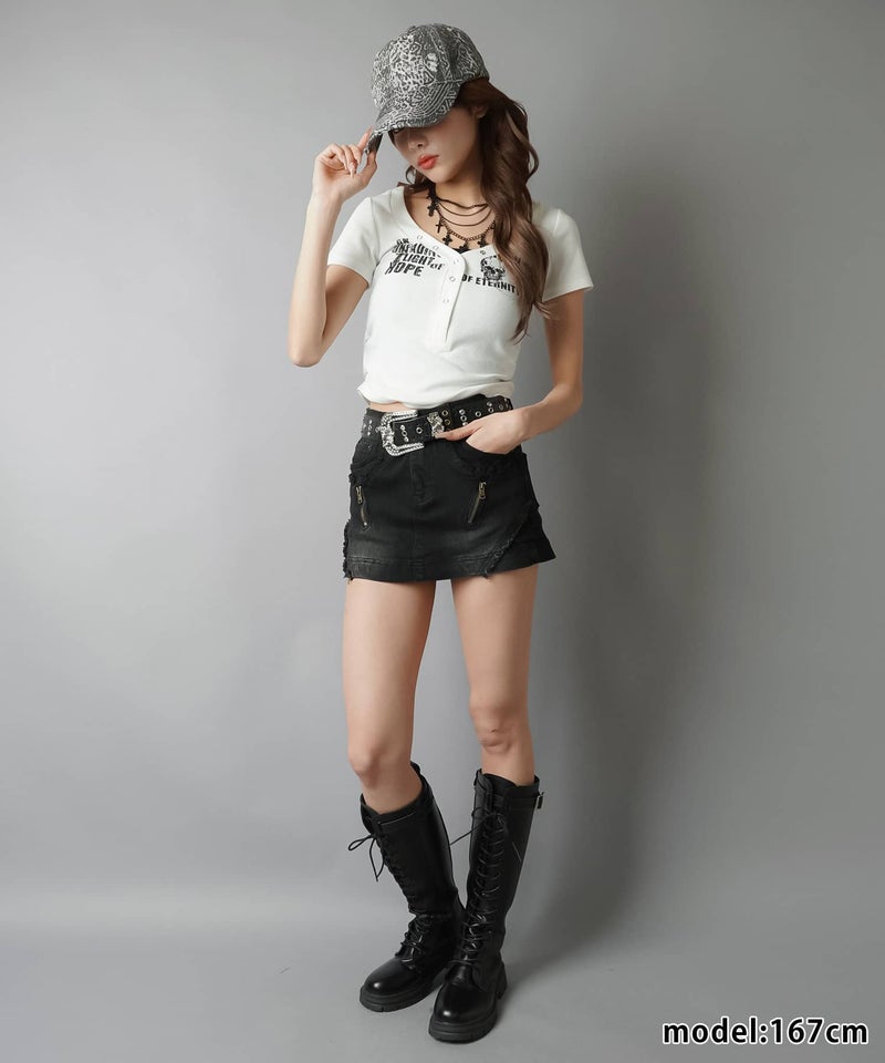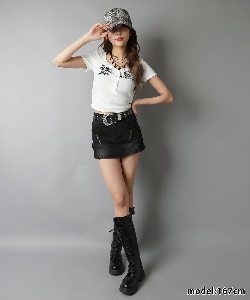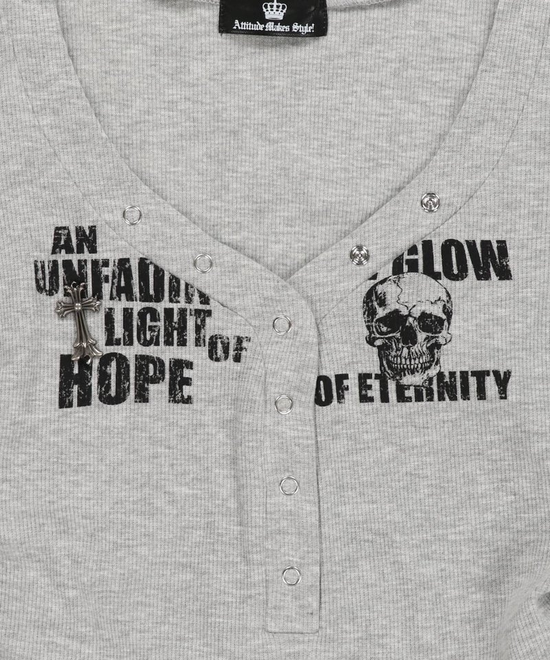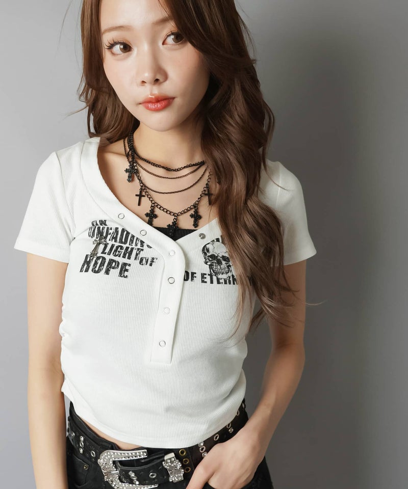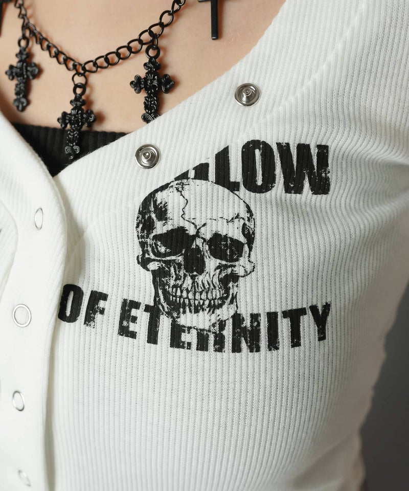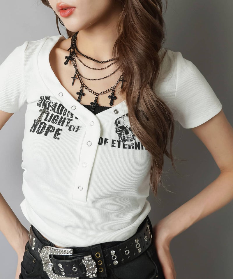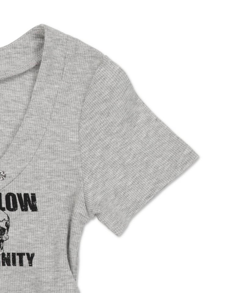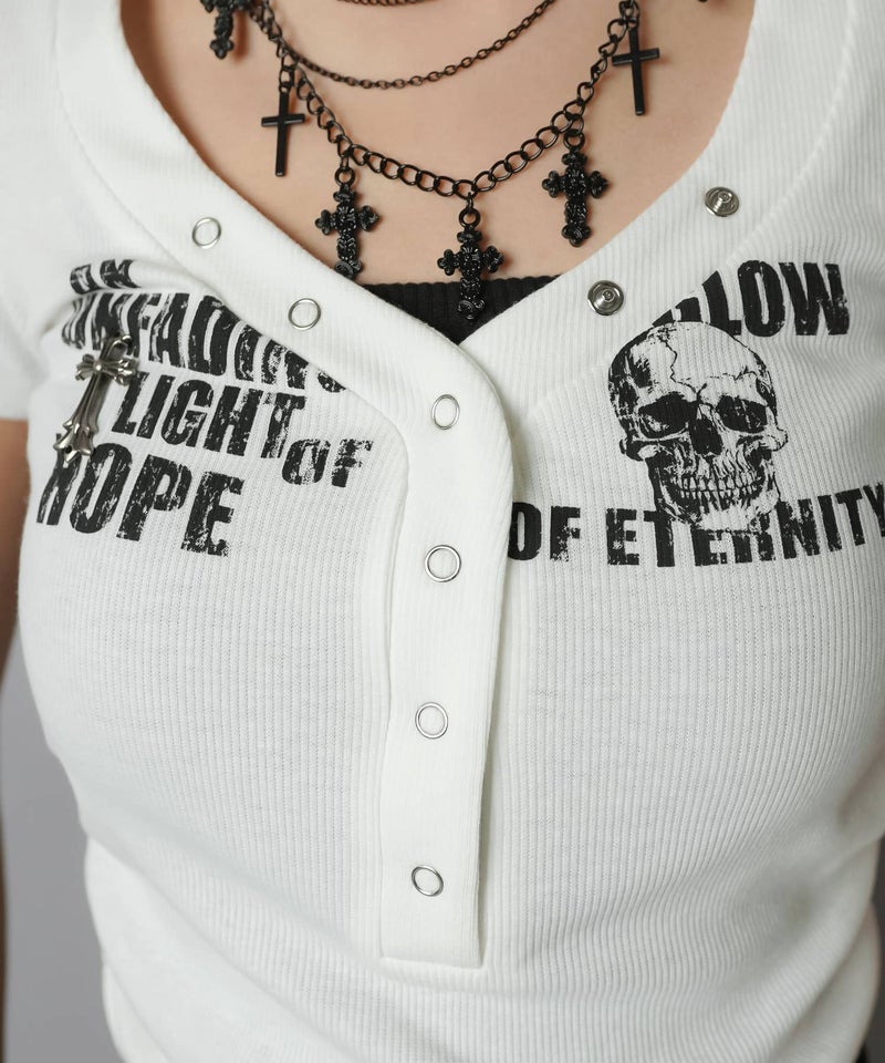 ヘンリーネック半袖Tシャツ/スカル/#平成ギャル