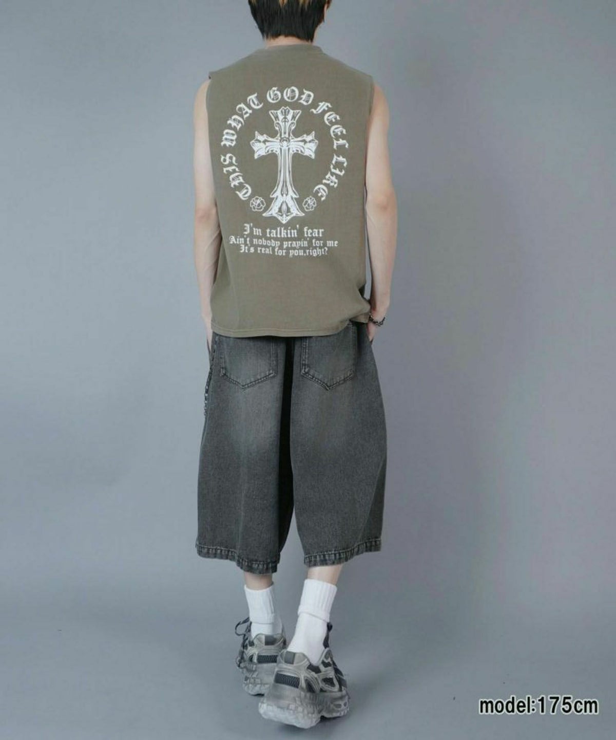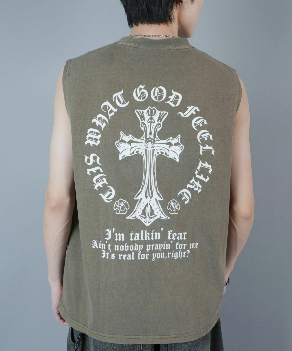 SOLD OUT 他の画像を見る 54%オフ🔥 【80%OFF】ピグメント加工バックプリントノースリーブTシャツ/バンT風/古着風/短丈 ¥ 2,189 → ¥ 550 税込 SALE UNISEX カートに入れる お気に入りに追加