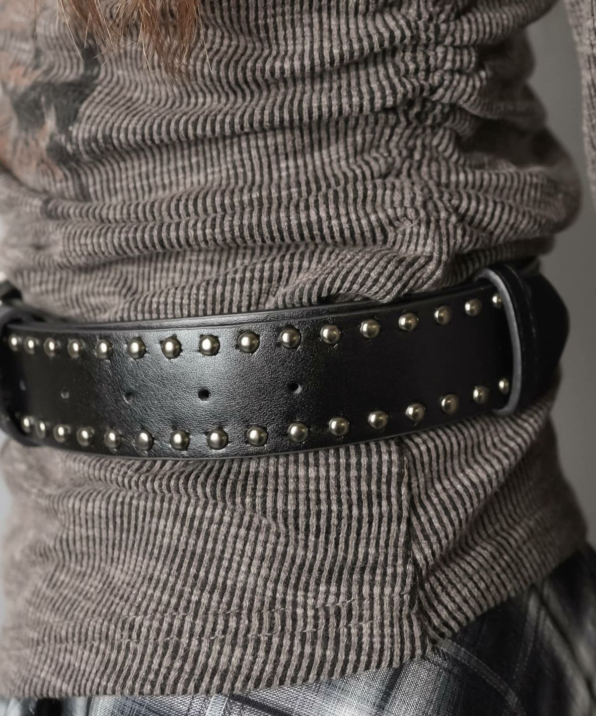 ハラコ風カウ柄ベルト/スタッズ