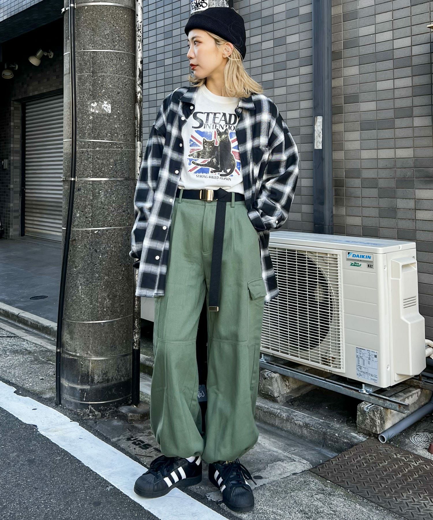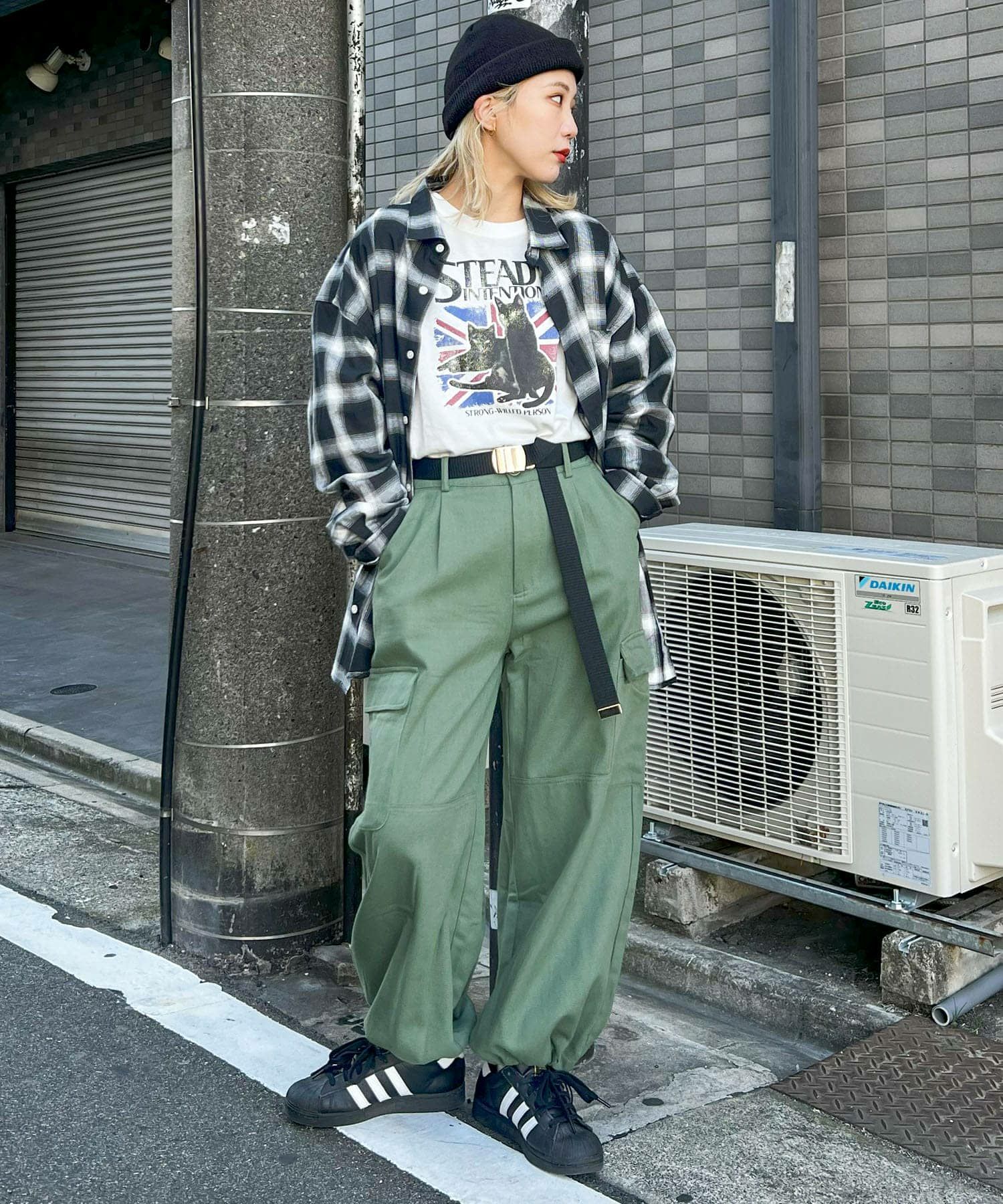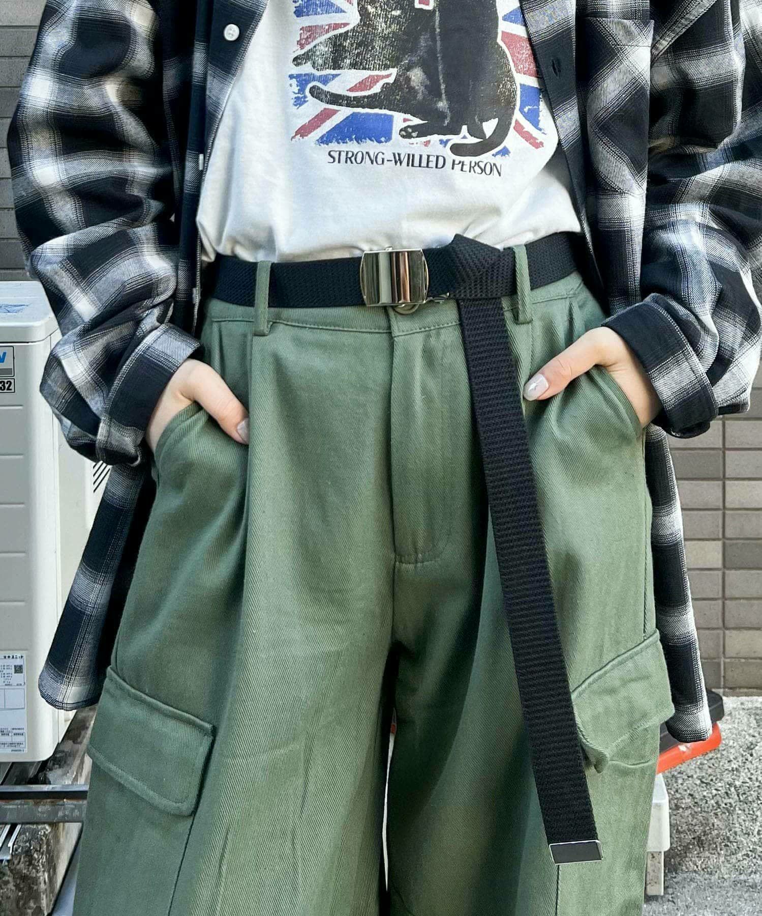 コーディネートのアクセントになるガチャベルトはマストアイテム。
