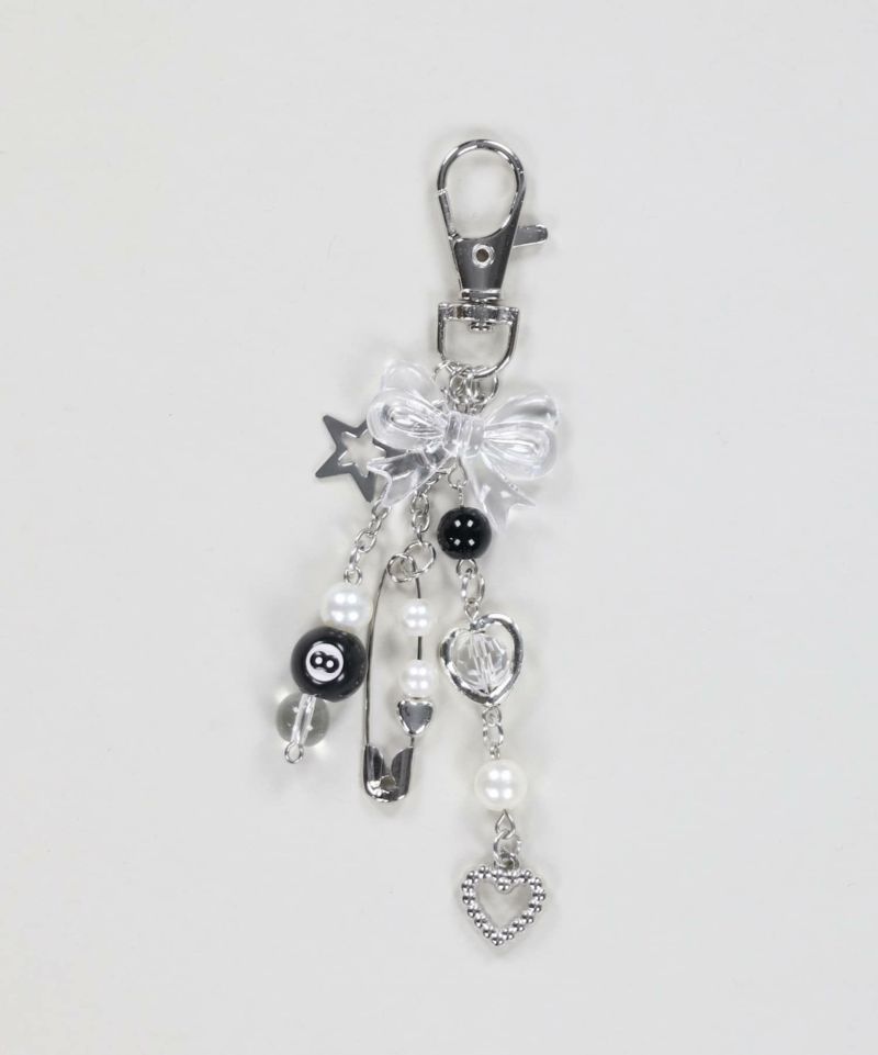 ビーズキーホルダー/リボン/安全ピン<メール便対応>