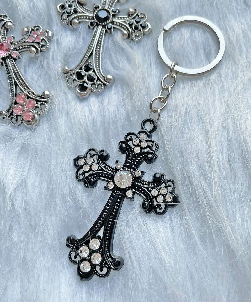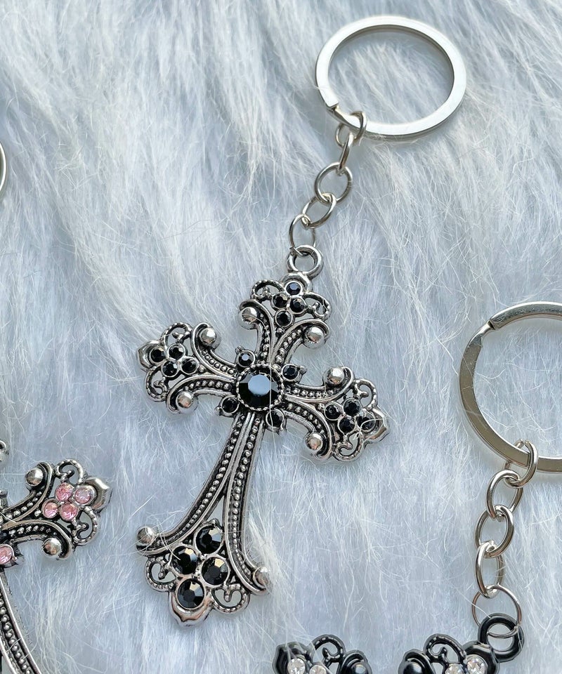 メタルキーホルダー/ラインストーンクロス<メール便対応>