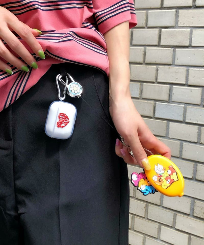 カラビナ付きなので、ウエスト周りを演出してくれるアイテム。