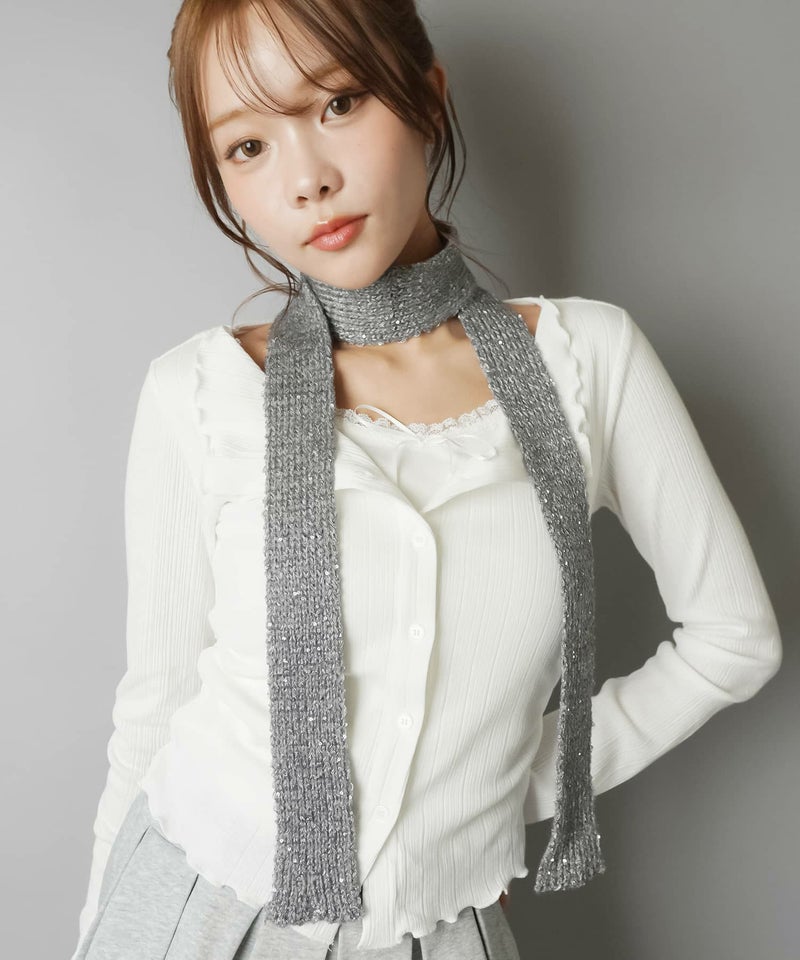 【34%OFF】ラメニット細スカーフ/ストール