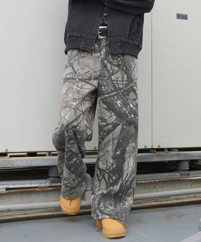 カモフラージュ柄ミリタリーワイドパンツ(リアルツリー)/ドローコード付きでシルエット変更可能!