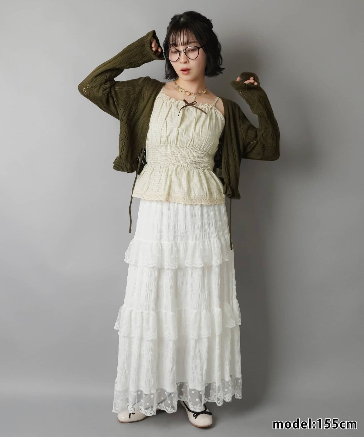 他の画像を見る レース×フリル×ギンガムチェック…♡重ねた質感がとびきり可愛い♪ 異素材レイヤードロングスカート/4段レイヤード/レース/#NEO森ガール ¥ 5,489 税込 再入荷 カートに入れる お気に入りに追加