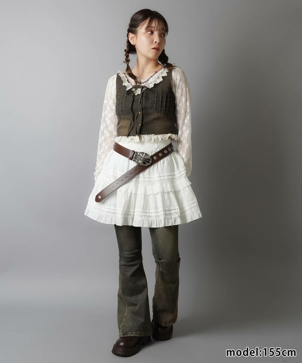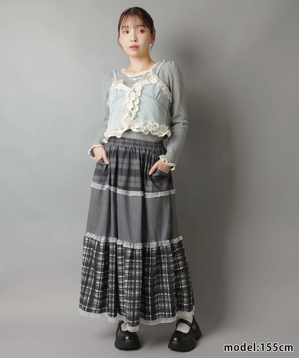他の画像を見る チェック柄レイヤード風デニムミドルスカート/フリル/イレヘム/インナーパンツ付き/#ロマンスパンク ¥ 4,389 税込 新作 2点以上10%OFFクーポン対象 カートに入れる お気に入りに追加