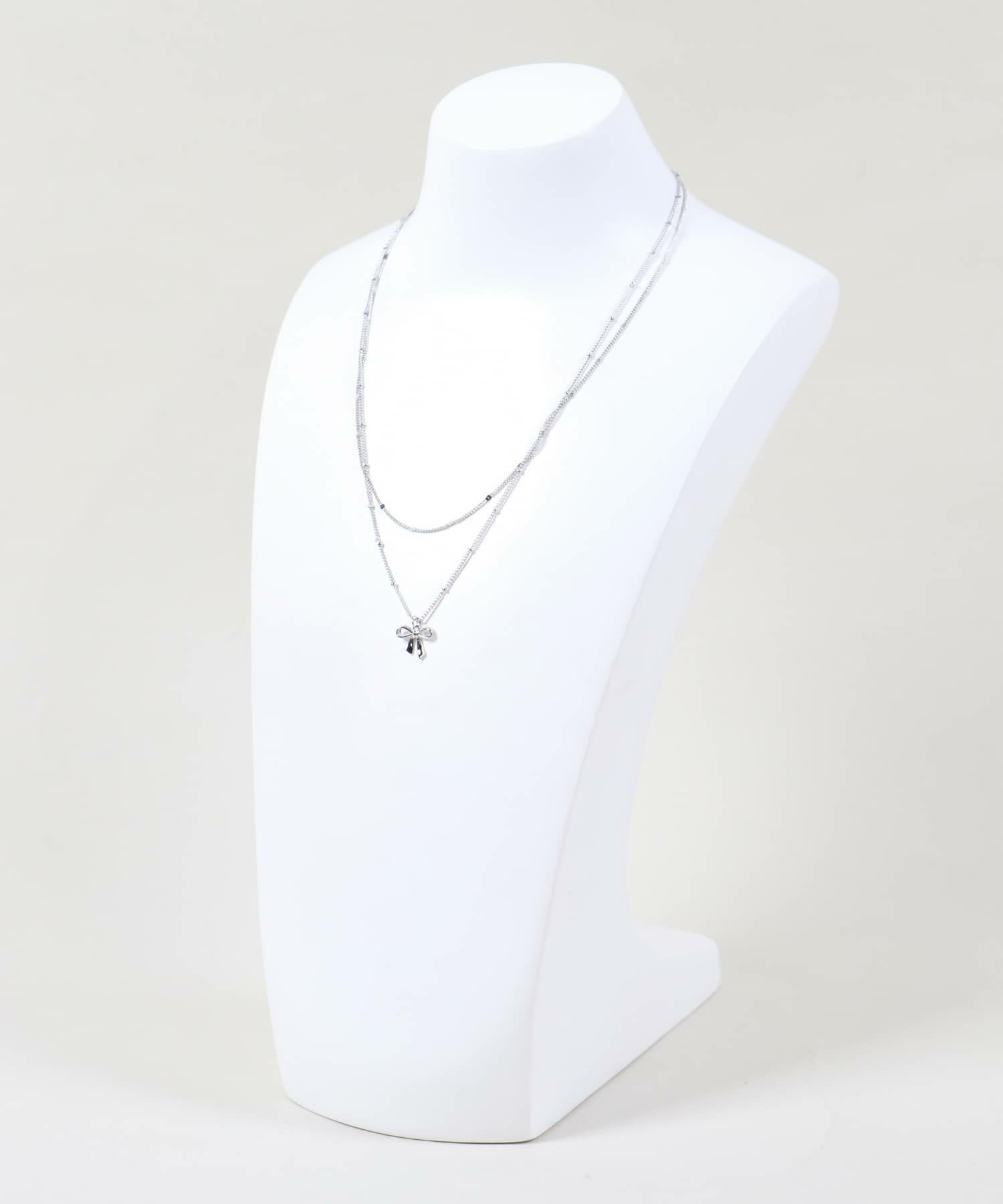 細チェーン2連ネックレス/リボン<メール便対応>