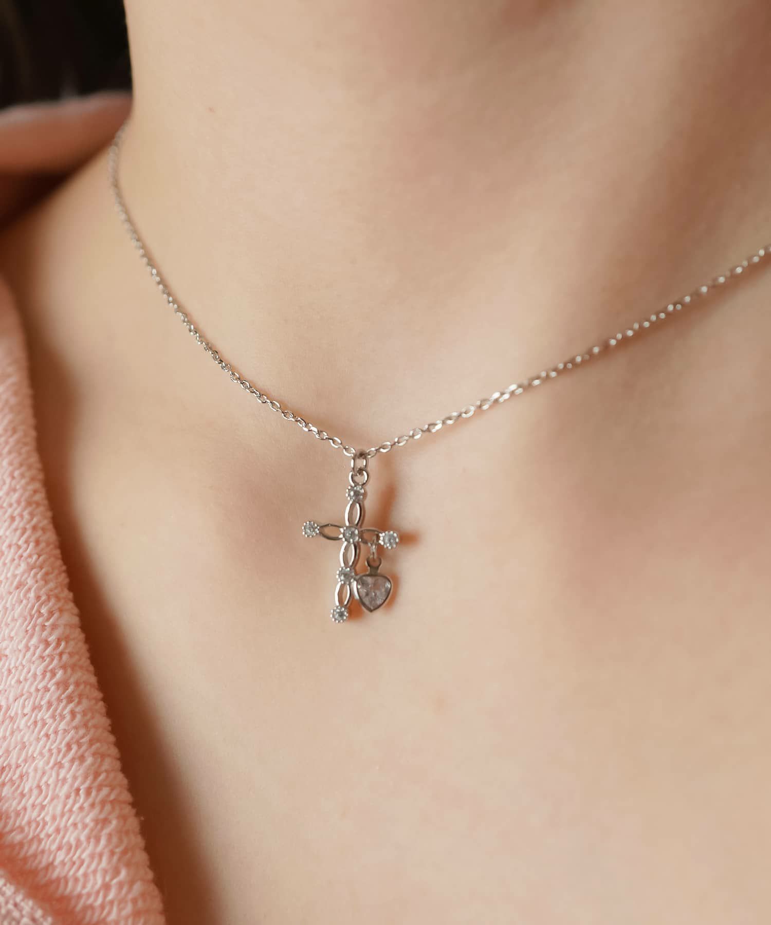 メタルネックレス/クロスハート<メール便対応>