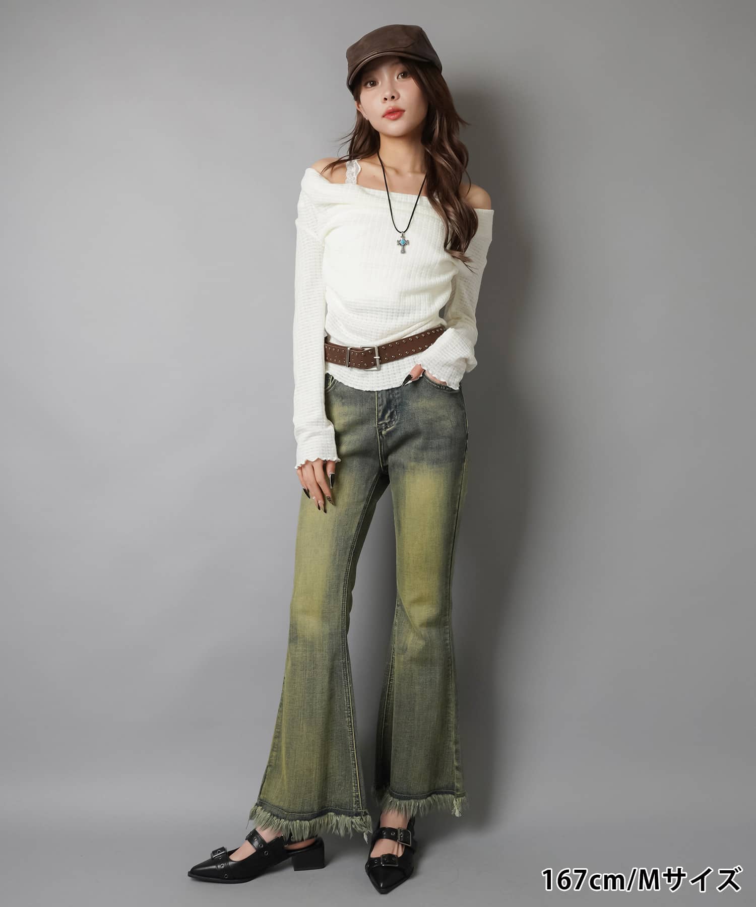 他の画像を見る ベーシックで1番着回せるフレアパンツ✨スカート重ね着にもおすすめ♪ デニムフレアパンツ/フリンジ/3サイズ展開 ¥ 4,389 税込 再入荷 2点以上10%OFFクーポン対象 カートに入れる お気に入りに追加
