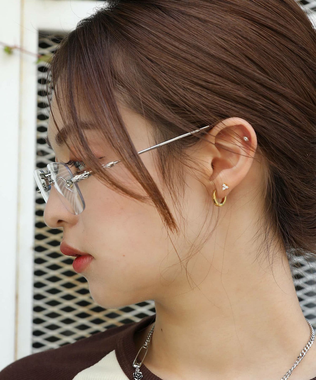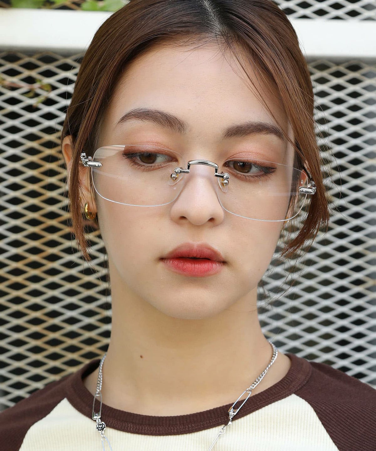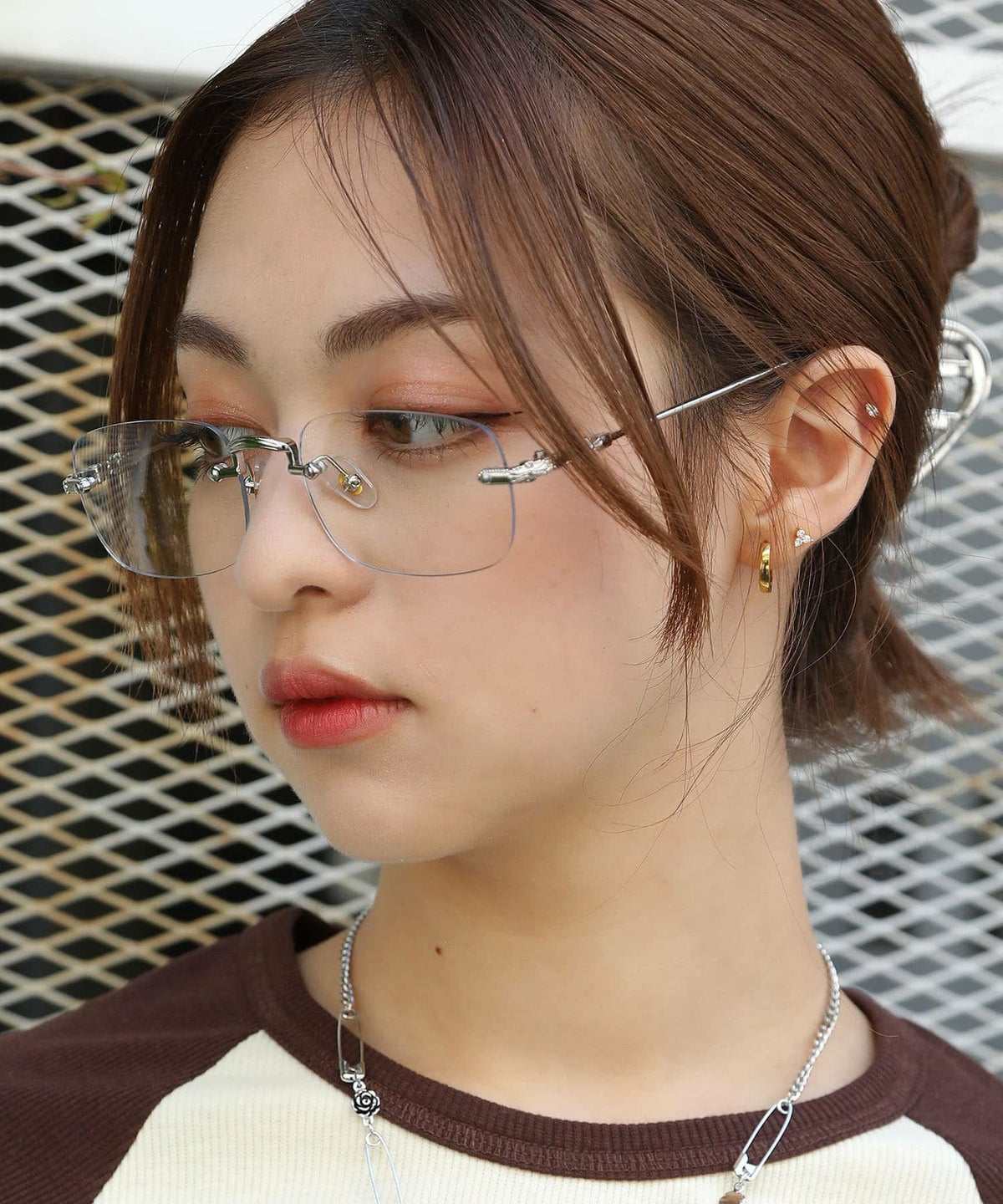 リムレスメガネ/フレームレスメガネ/ピアス #ギークシック