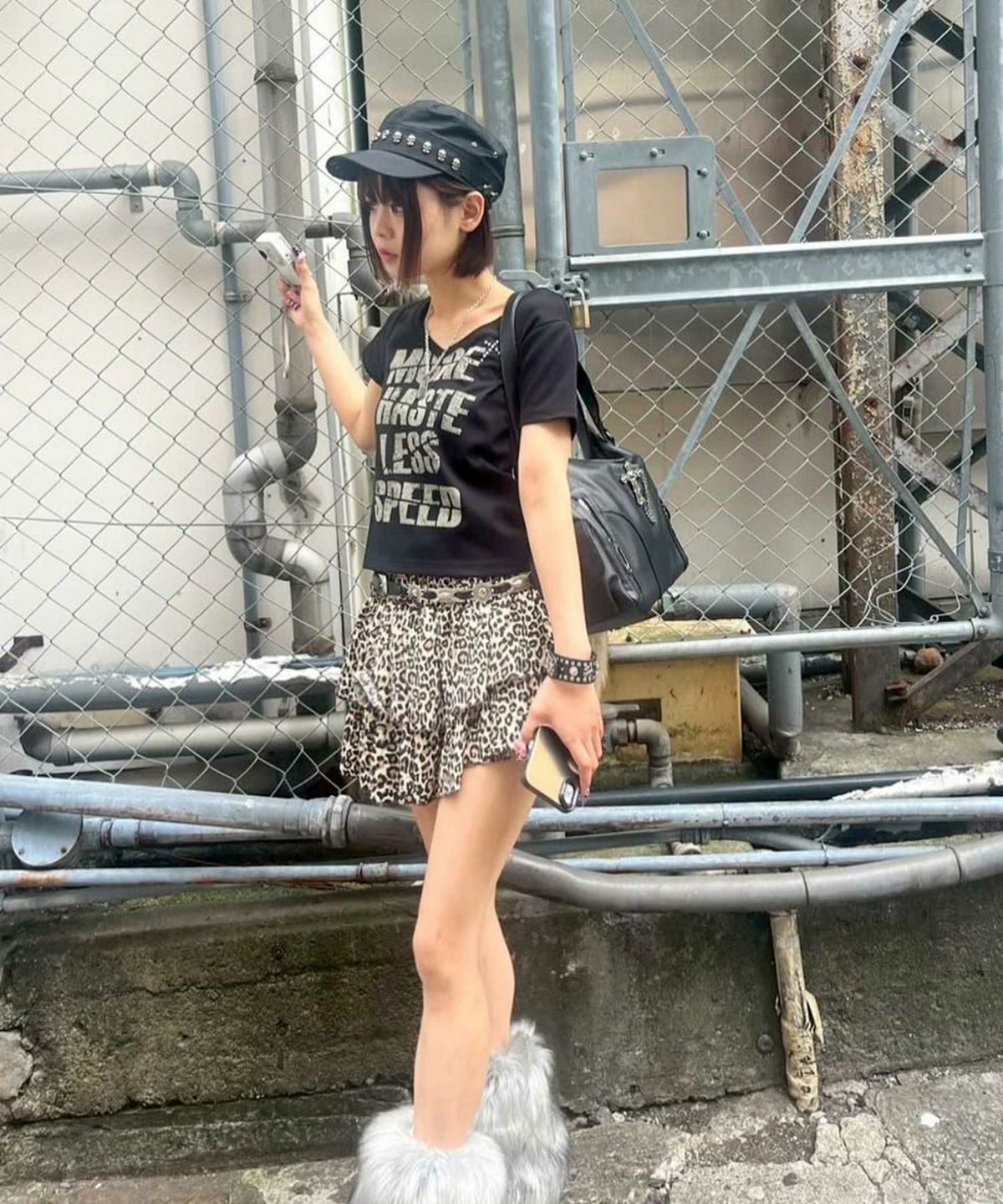 ヒョウ柄ティアードミニスカート/レオパード/インナーパンツ付き