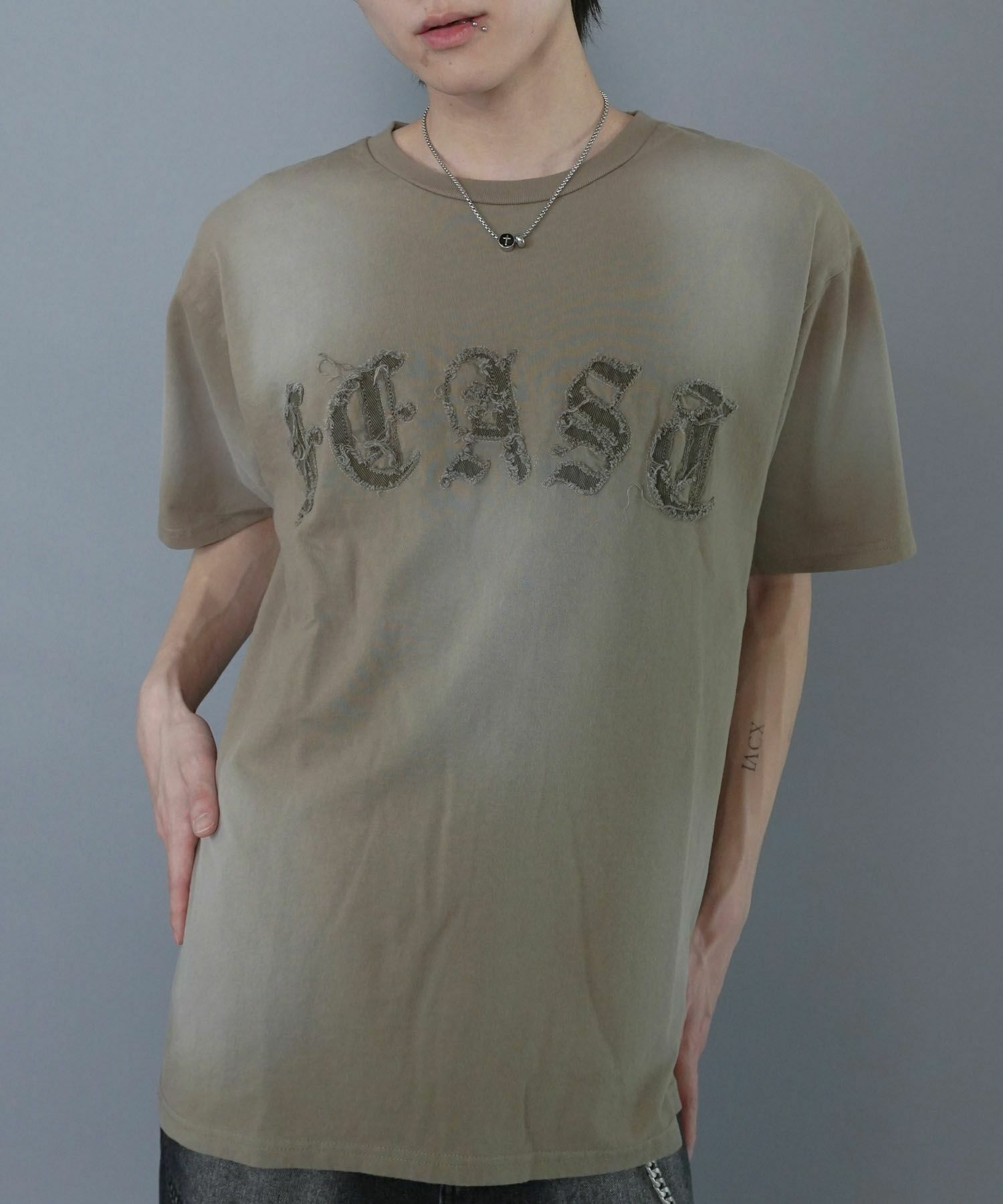 【90%OFF】ヴィンテージライクグランジTシャツ/パッチワークロゴ