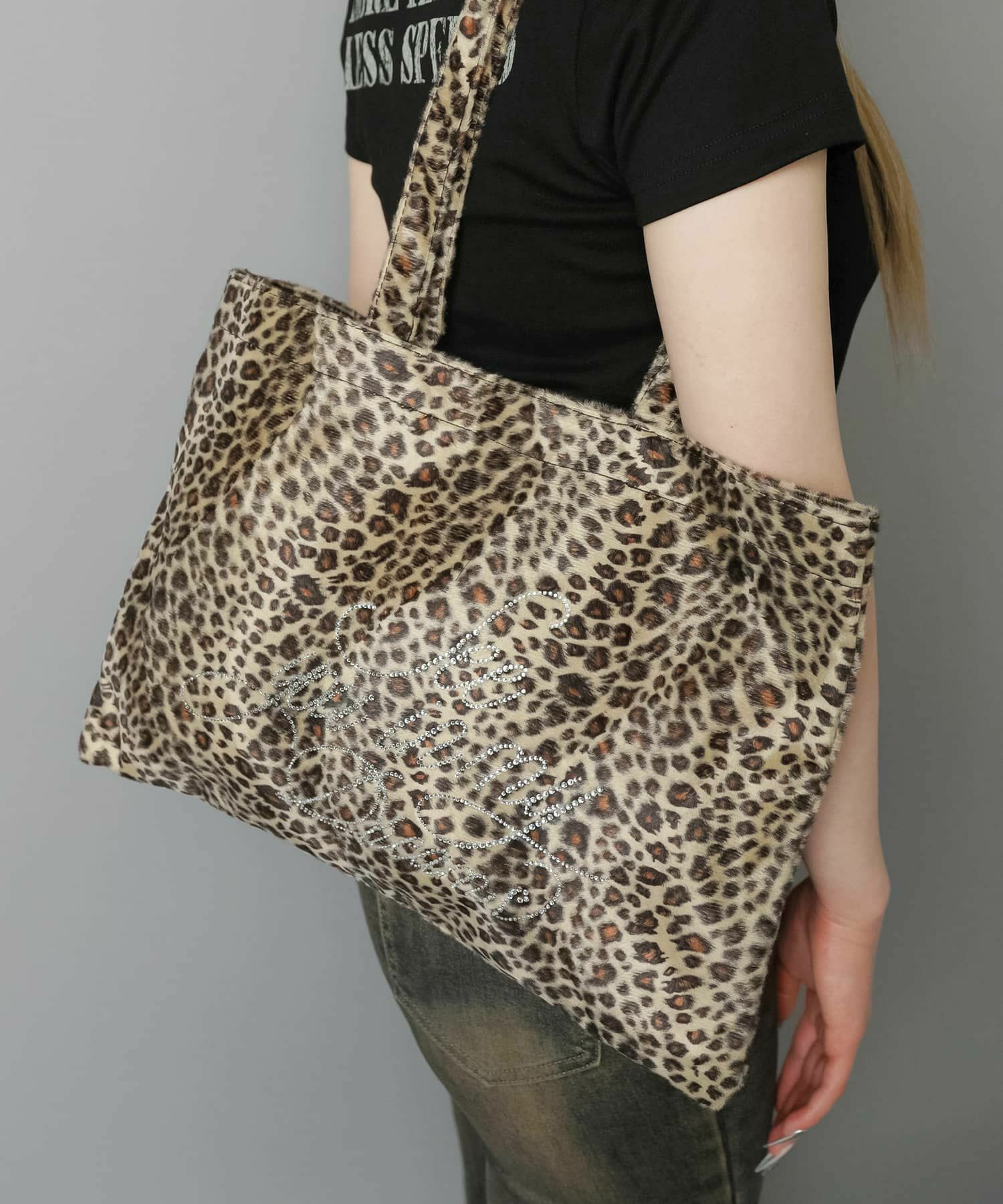 起毛トートバッグ/ラインストーンロゴ