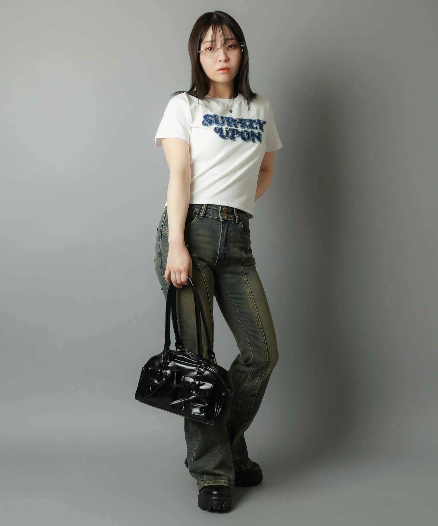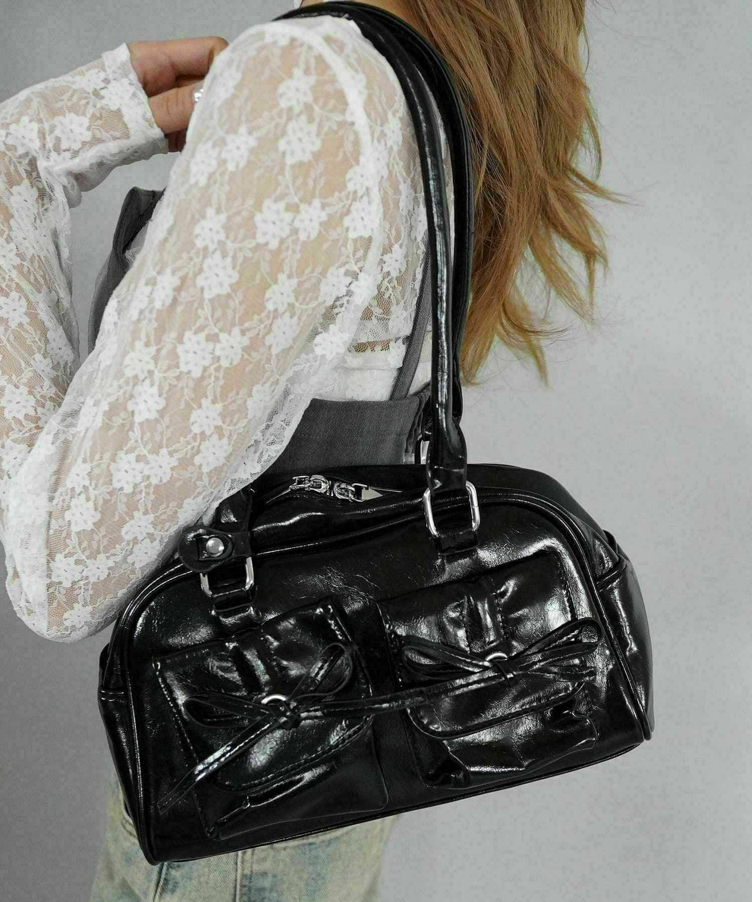 合皮ハンドバッグ/リボンポケット/4色展開/#バレエコア
