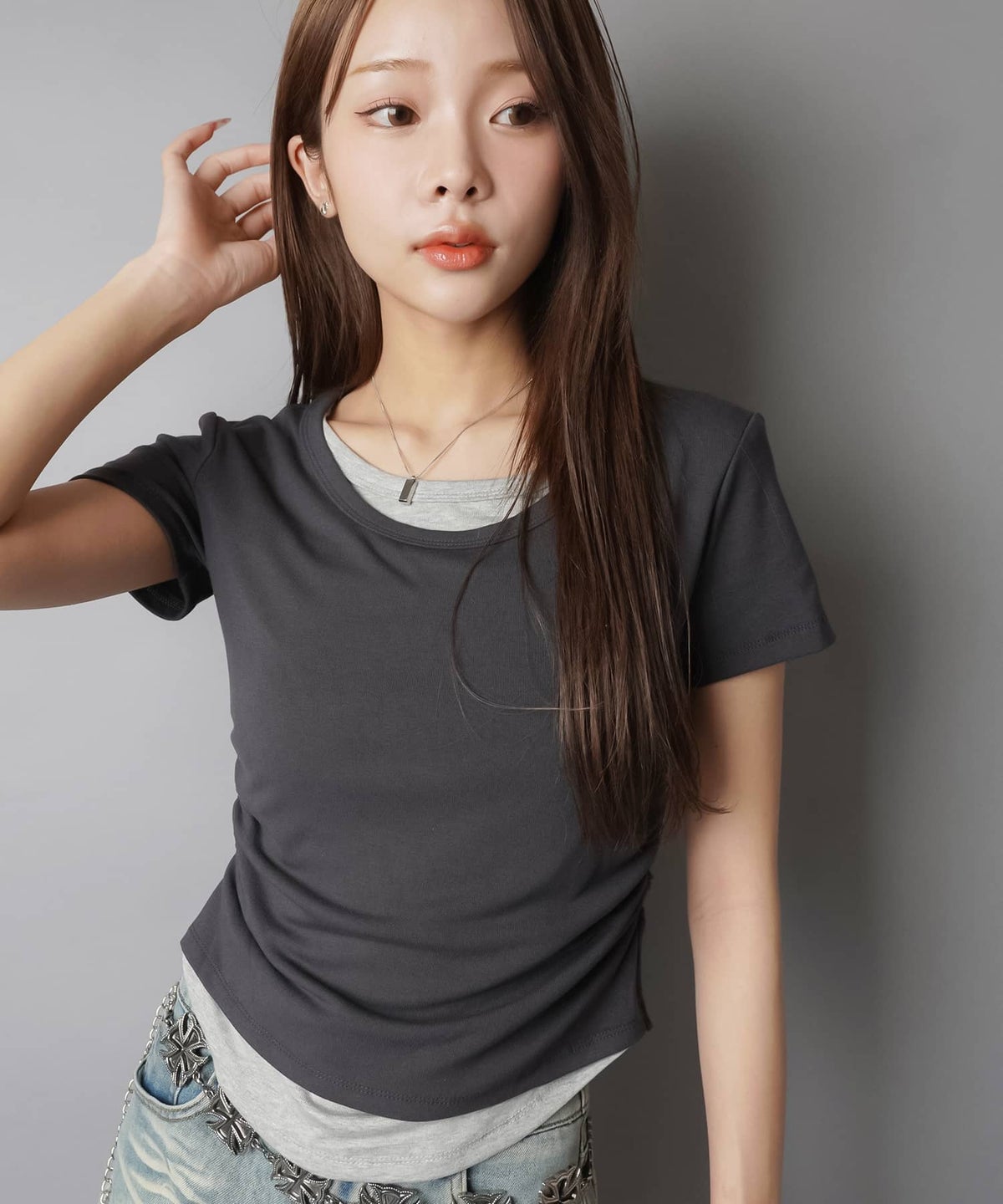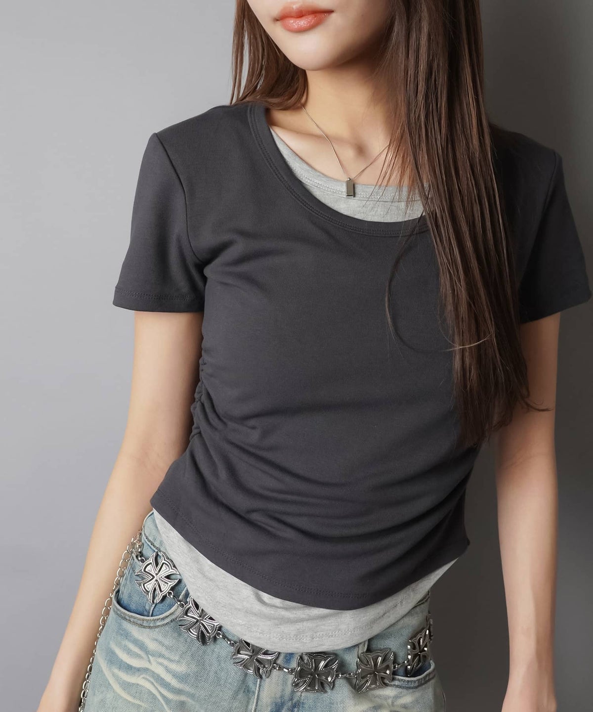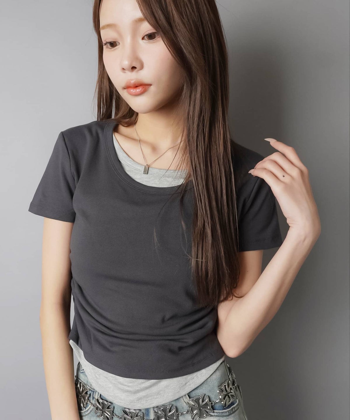 スクエアネック半袖Tシャツ/スカルクロス/#平成ギャル