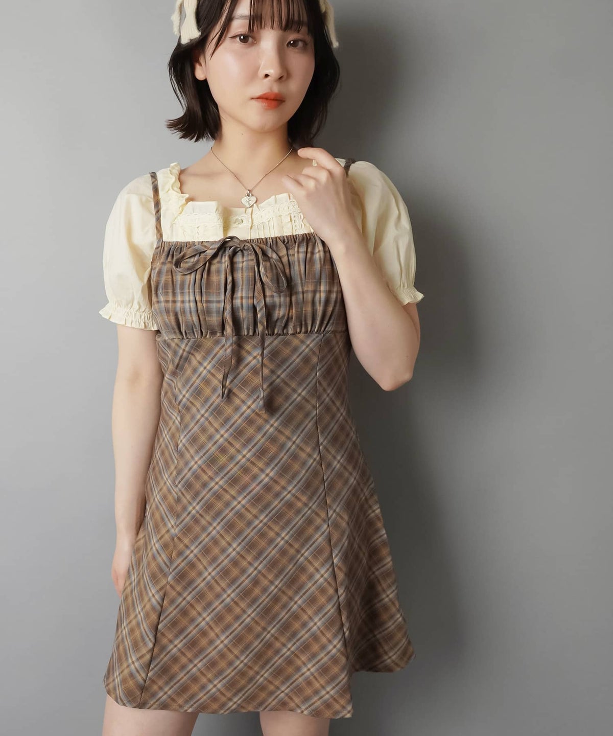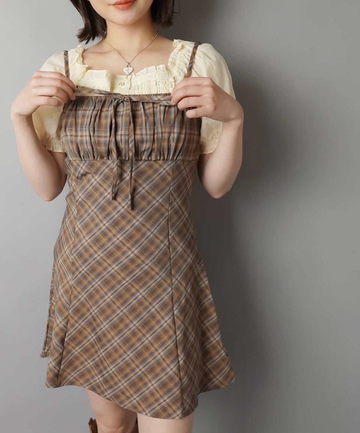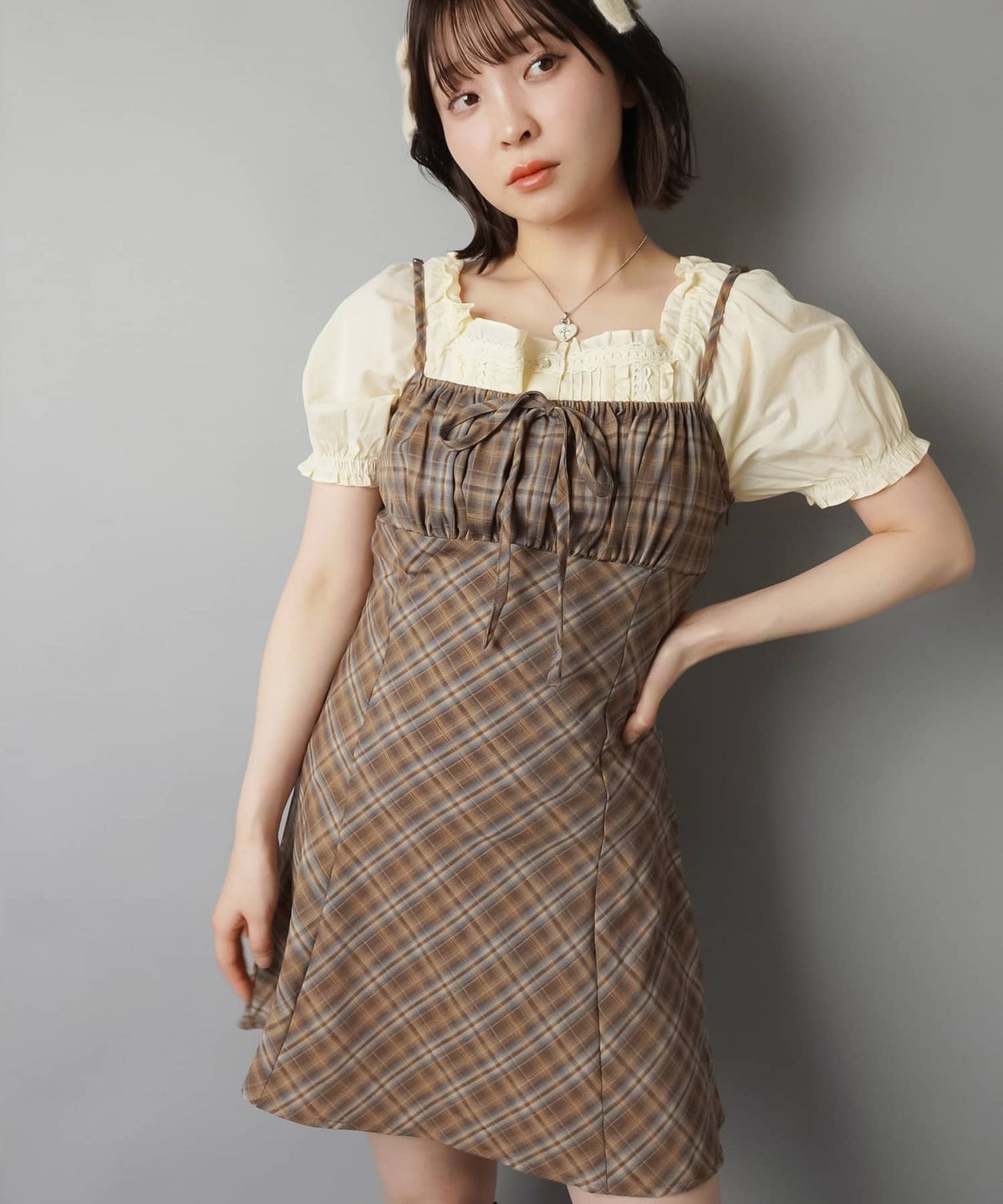 異素材ティアードチュニック/チェックフラワー/#NEO森ガール