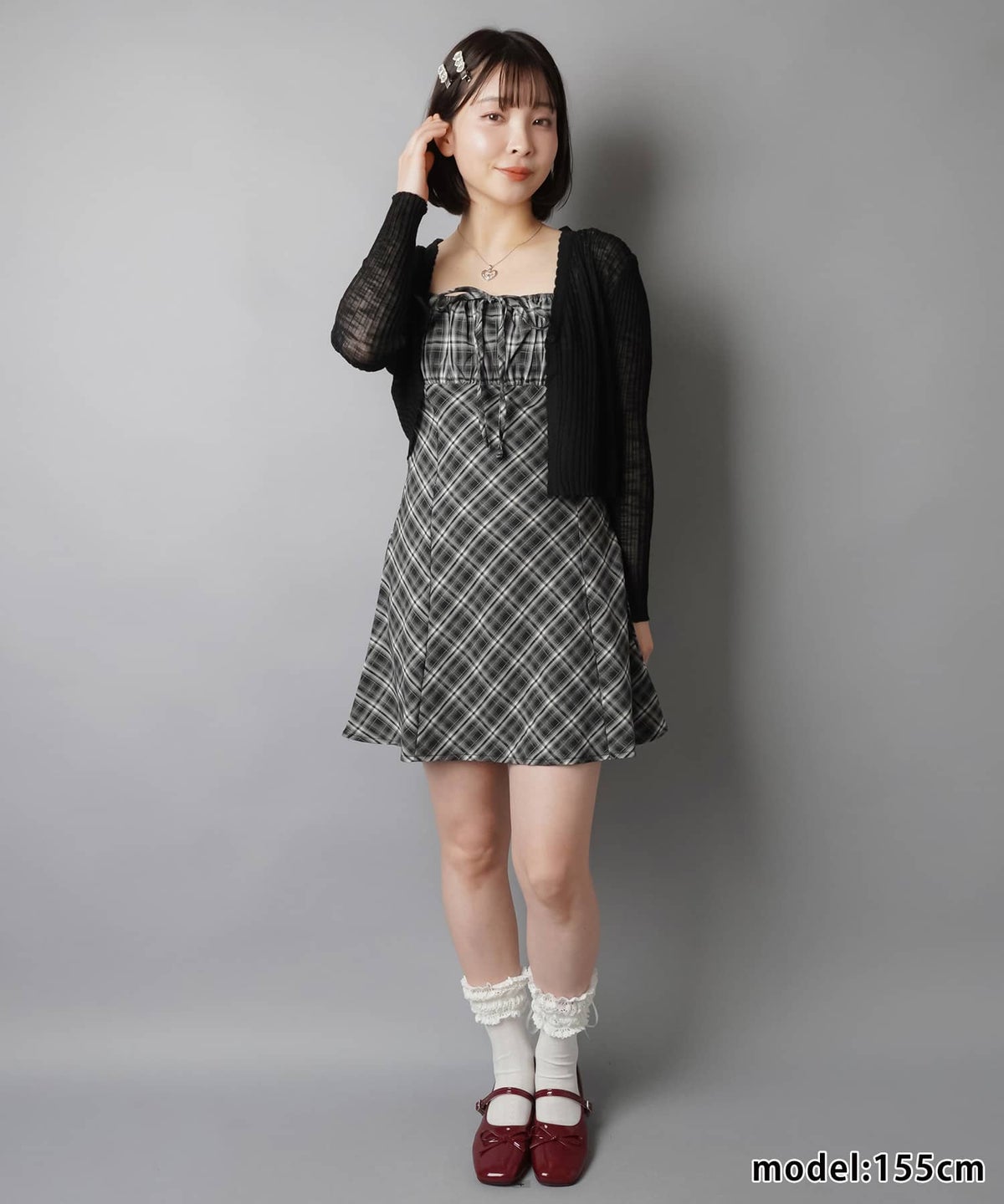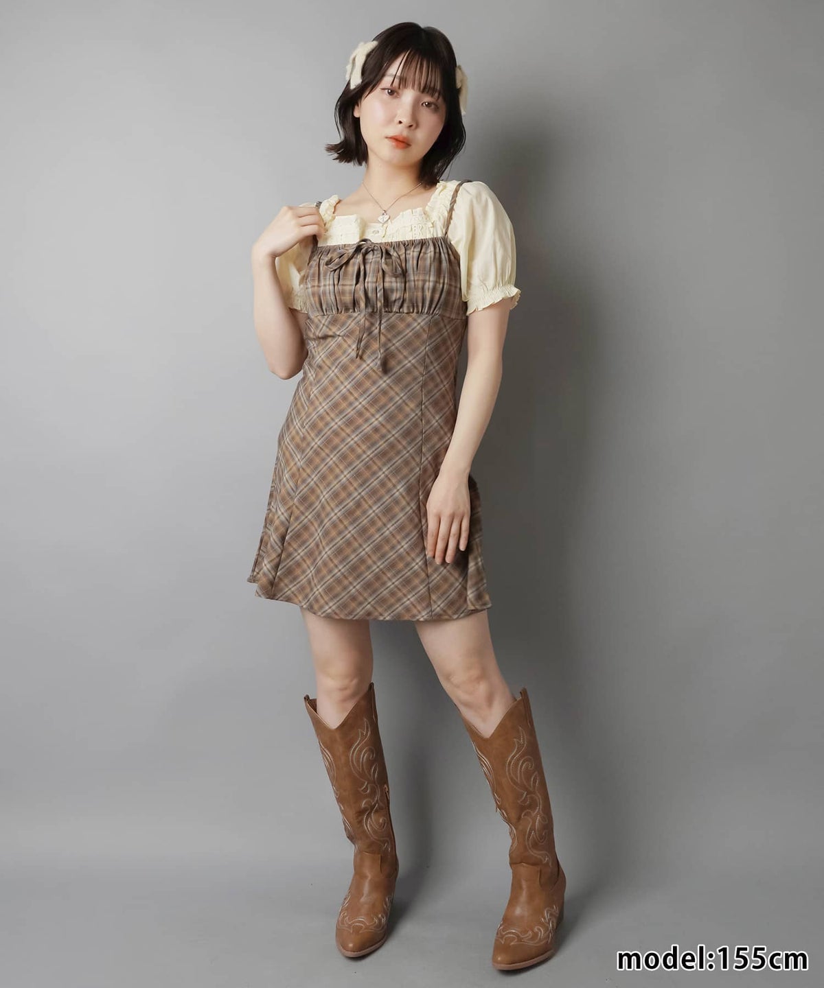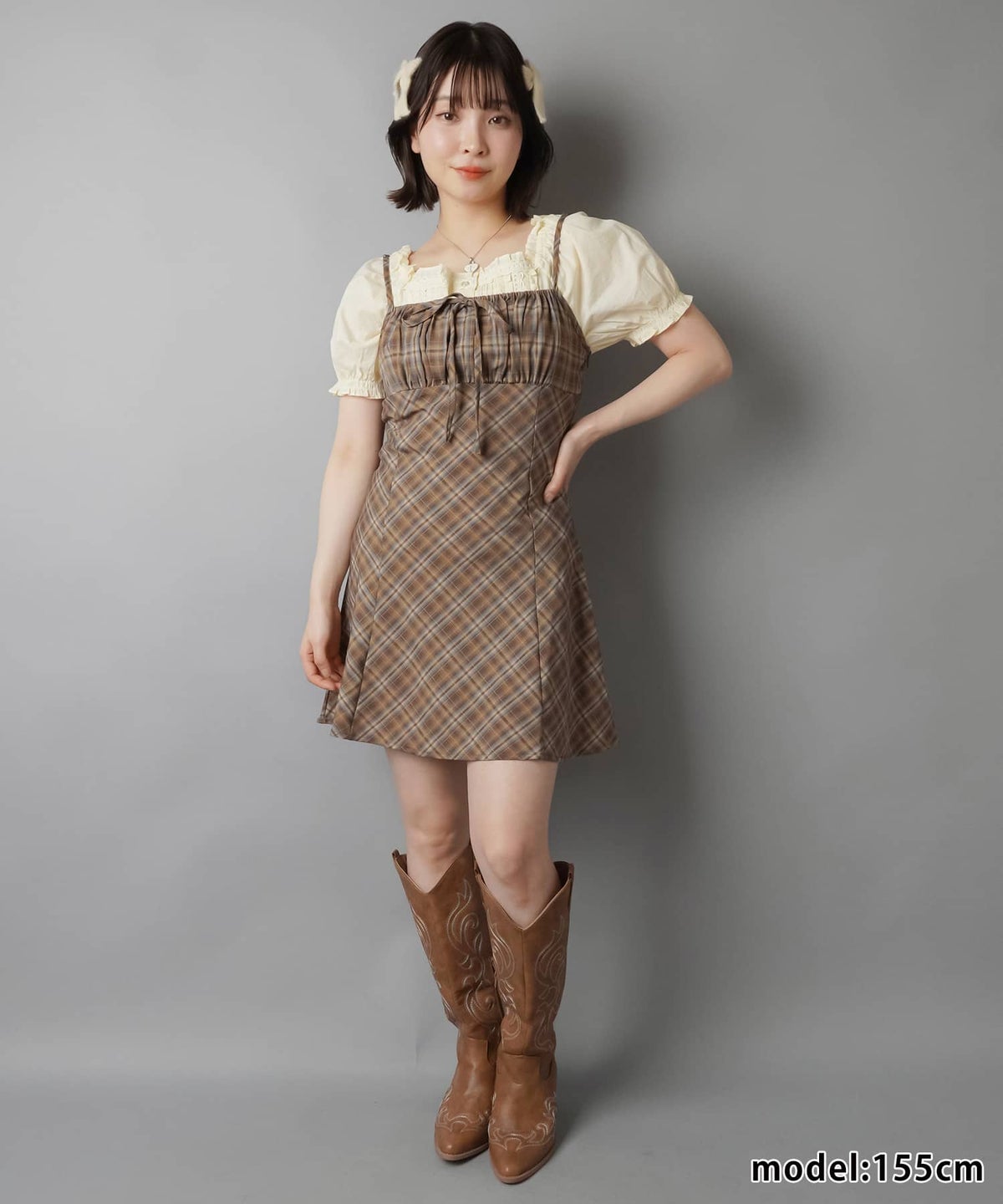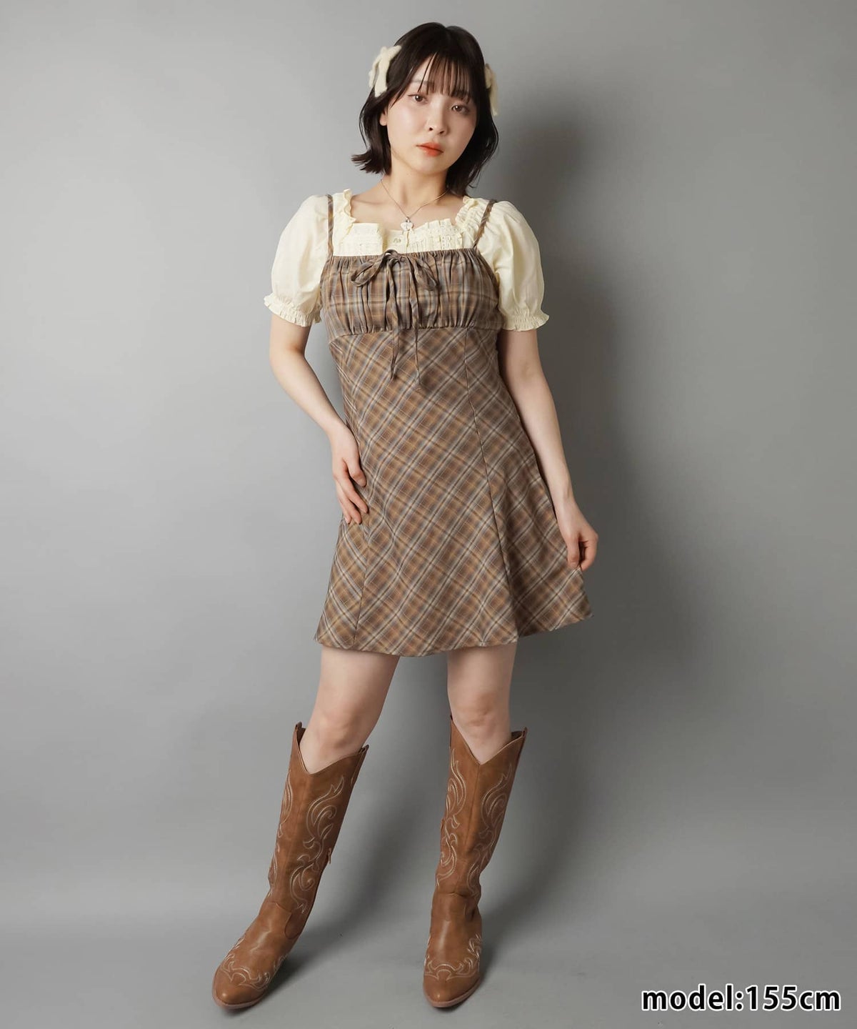 異素材ティアードチュニック/チェックフラワー/#NEO森ガール