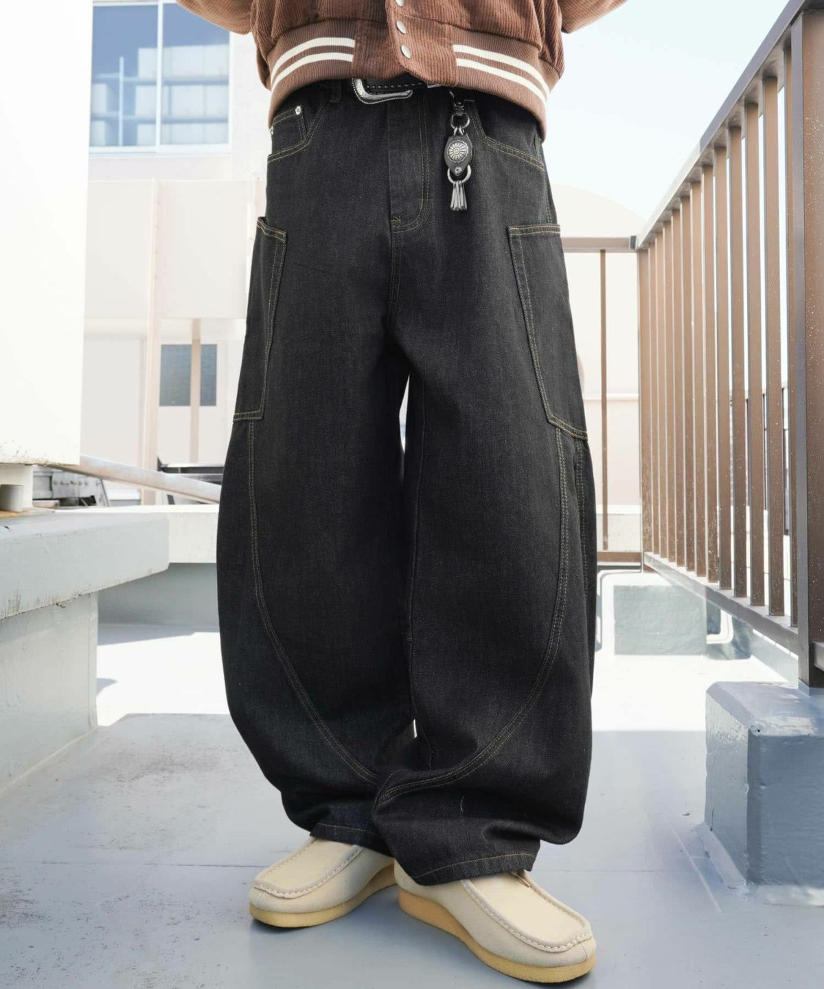 バルーンデニムワイドパンツ/バギー/カーブシルエット
