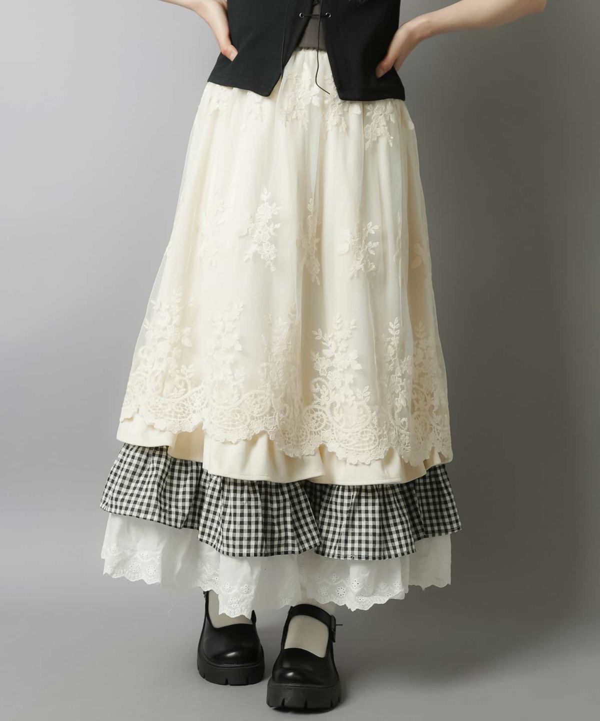 SOLD OUT 他の画像を見る レース×フリル×ギンガムチェック…♡重ねた質感がとびきり可愛い♪ 異素材レイヤードロングスカート/4段レイヤード/レース/#NEO森ガール ¥ 5,489 税込 再入荷 カートに入れる お気に入りに追加