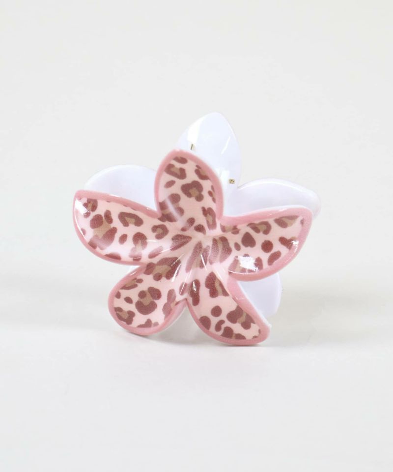 ヒョウ柄ヘアクリップ/ハイビスカス