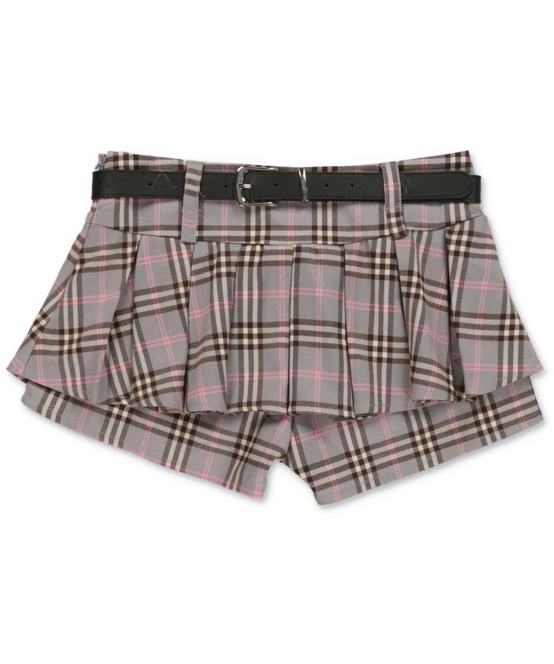 インパンレイヤード風プリーツミニスカート/チェック柄/ベルト付き/ギャルJK/スクール風/#平成ギャル