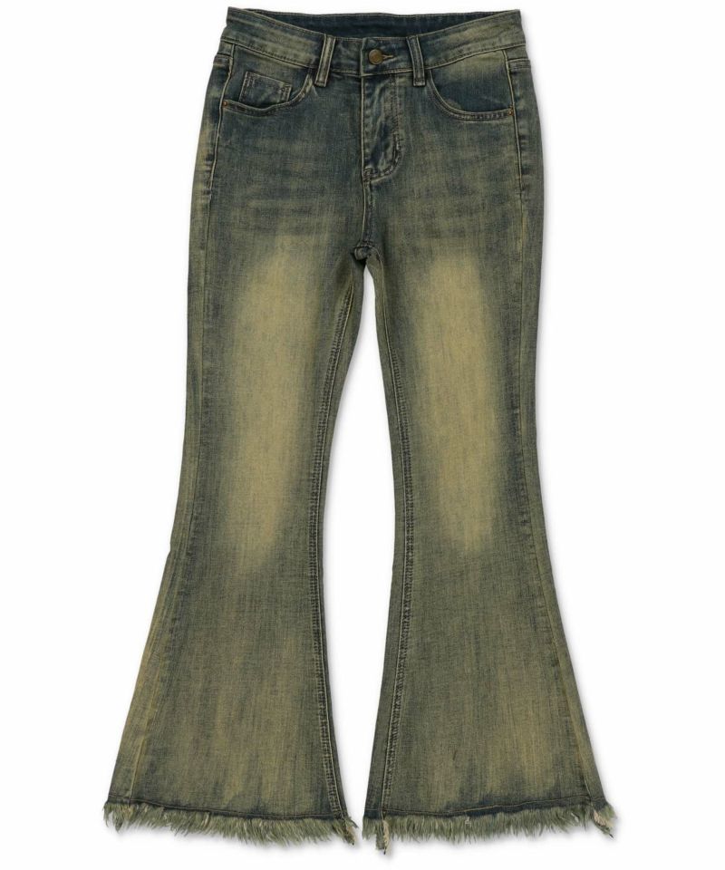 さらに、ボトムにはフリンジデザインのデニムフレアパンツをレイヤードし、動きのある足元に。