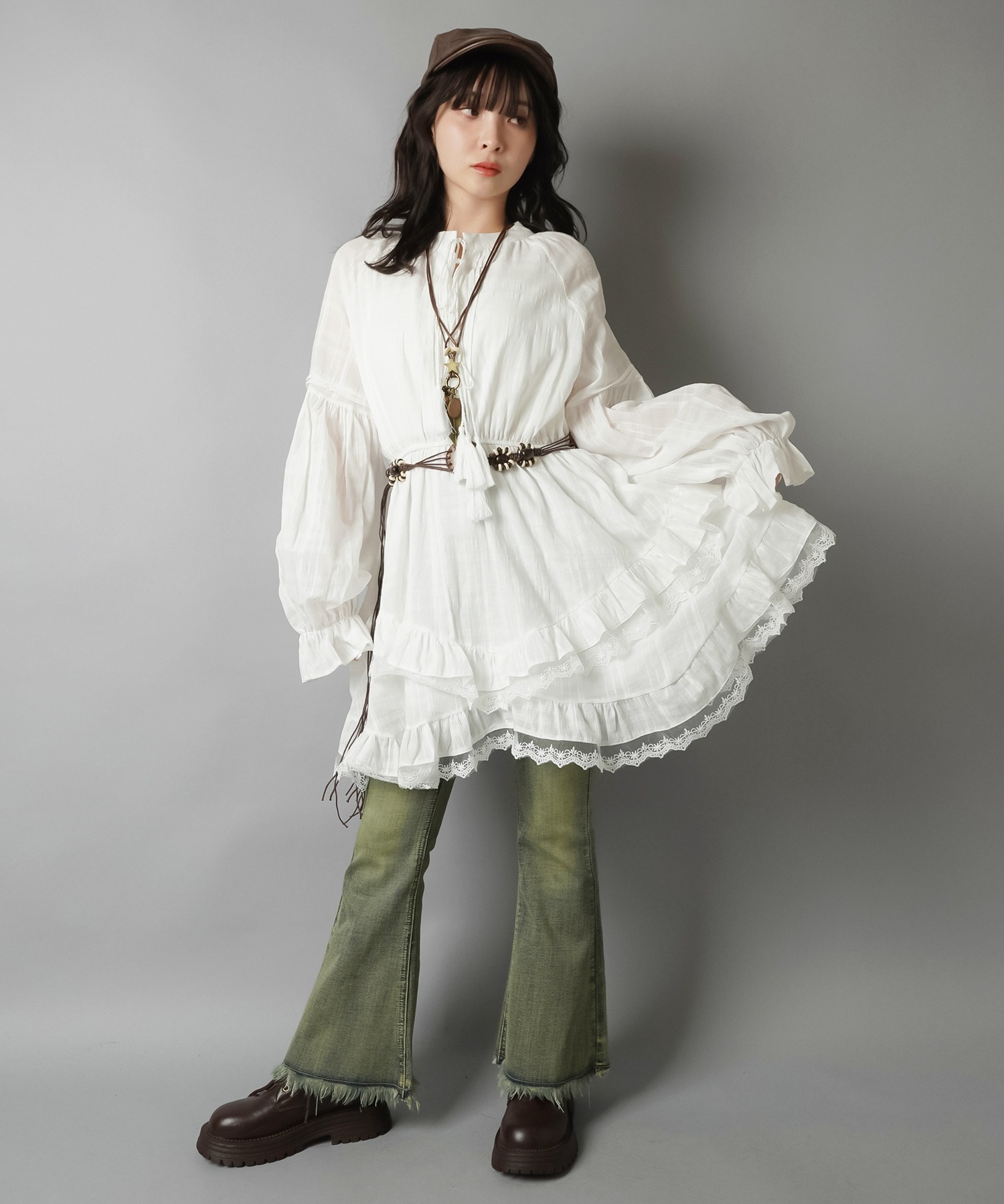 ベルト付きブラウスワンピでつくる、最新トレンド☆ウエスタンミックスコーデ